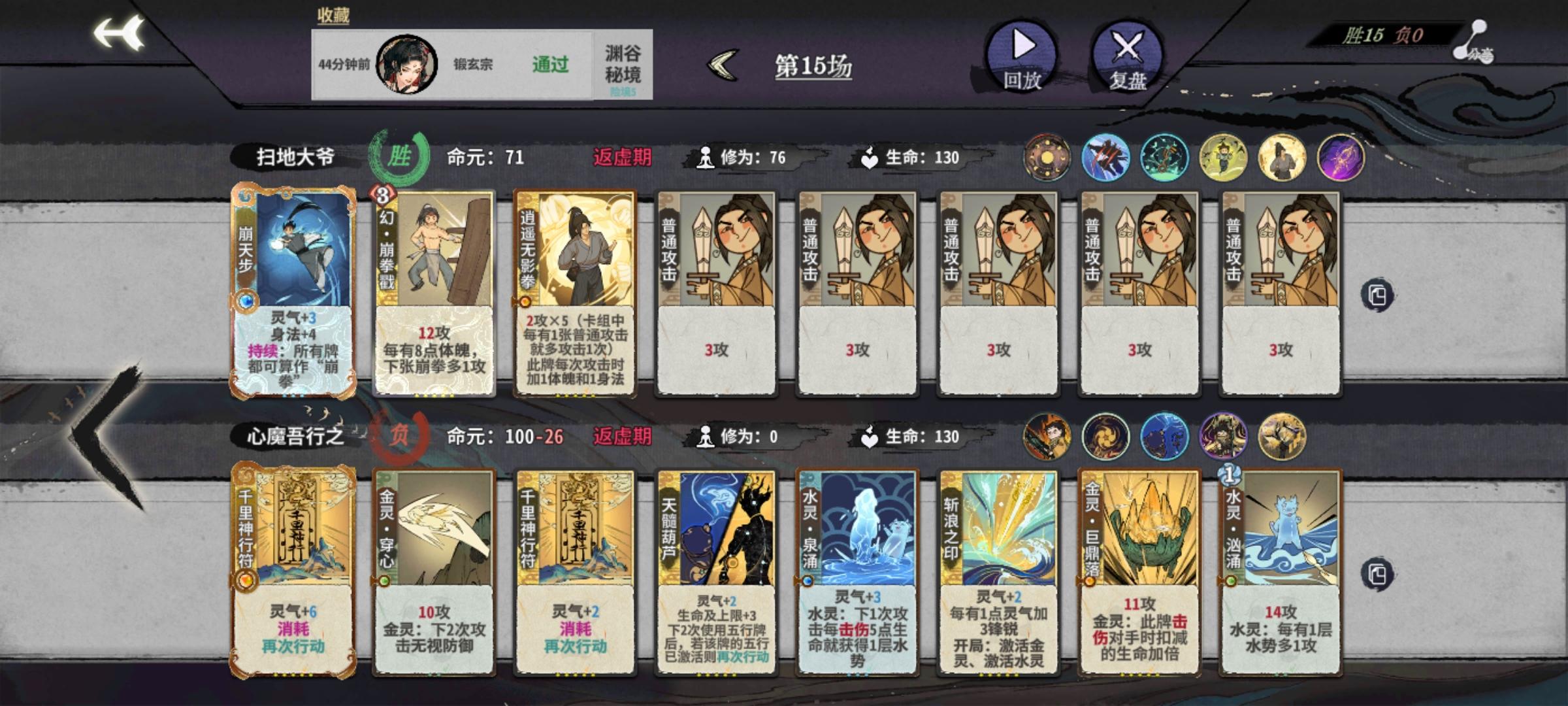 游戏昵称:流水无情叹落花UID:69608267438c9455b20e512b1.卡组特点:剑阵流派,攻防兼备,有效抵挡混沌天魔三动爆发2.核心仙命:金丹期龙鳞保命必拿,能平稳度过前期,有剑阵守护优先拿剑阵守护,在没有水月剑阵的情况下很好用3.核心卡牌:合势剑阵,由于合势剑阵的被动效果,当卡组中八张都为剑阵时,满级合势剑阵可打出高达39/39攻防,利用连环剑阵重复效果配合镜花剑阵收尾,在