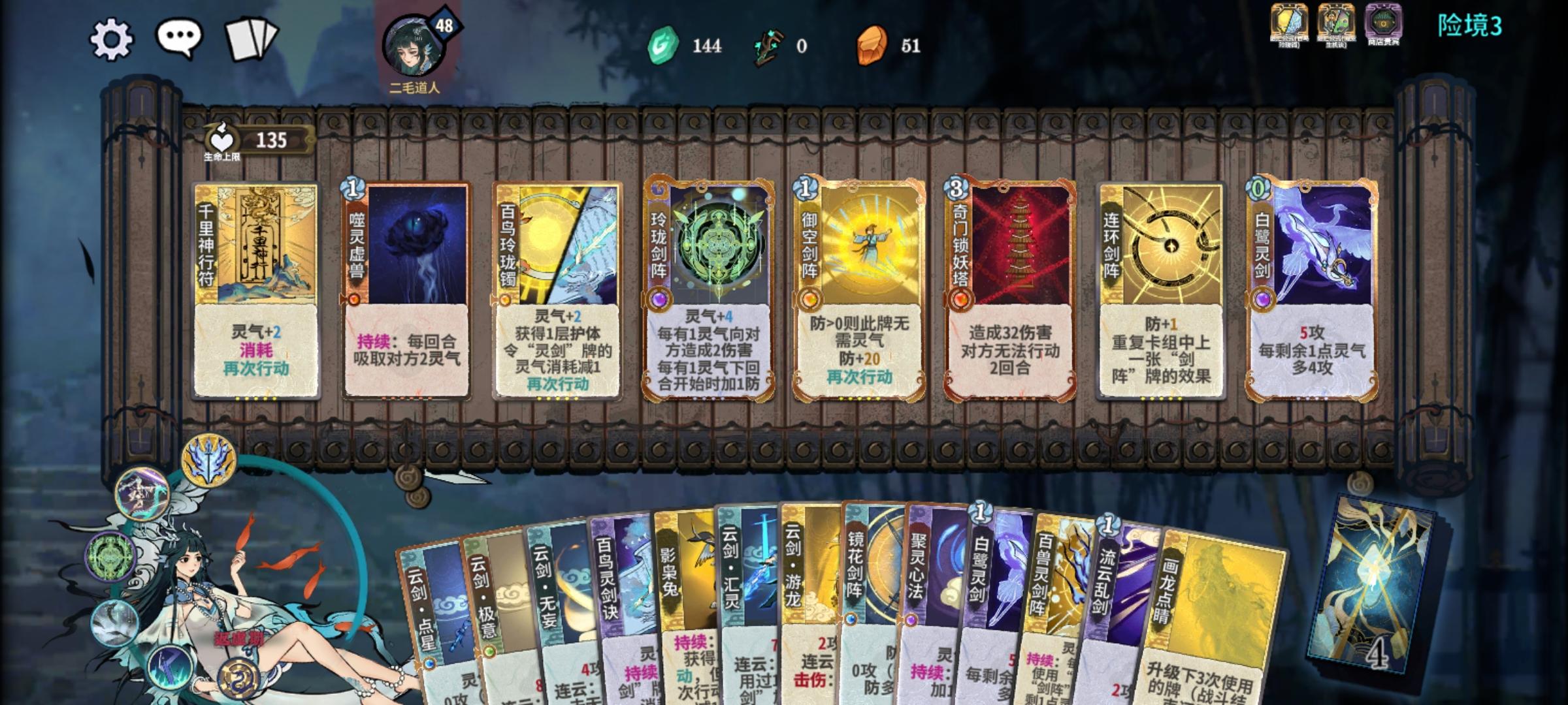 这里面没有修为这一说法,一牌等于一d,合牌,炼化也是。所以老鼠是垃圾。全部都是门派牌,副职只能靠买和副职点。最后对局最好能二动杀,三动杀也行,但是要能起防回血。对局关卡会有机缘牌,概率挺小的。最后提一句,狂龙是垃圾仙命,不要选