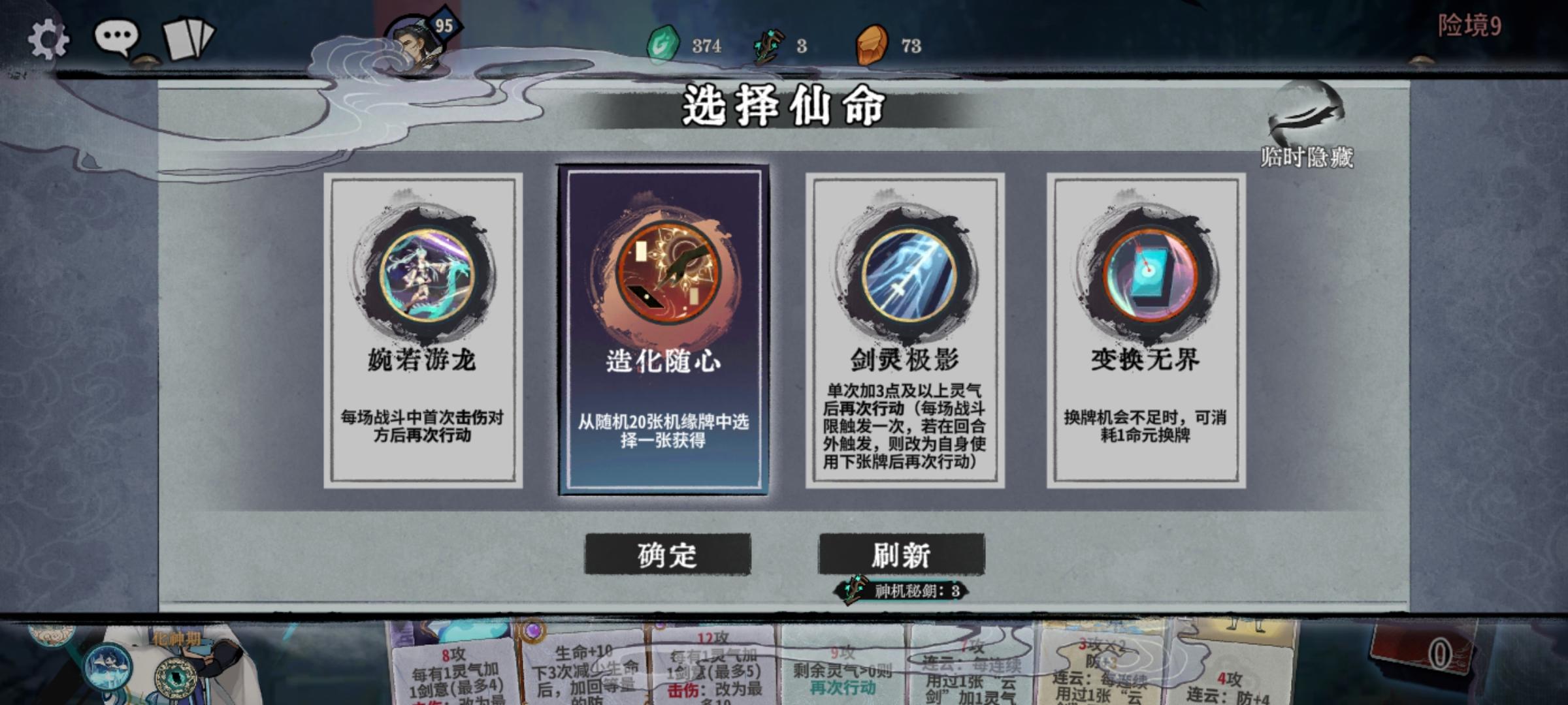 不过我觉得应该是必拿。你说的对,还是不爽,单机PVE还是就这样,把副职牌换成高概率机缘牌和增加仙命随机。还有一点我才知道,这个闪影剑,它不是一段加一段灵气,它是一次性加满灵气,我还以为按照它的描述来讲,确实是一次一灵气,但是它是增加的灵气,它是按击伤次数的和计算真垃圾