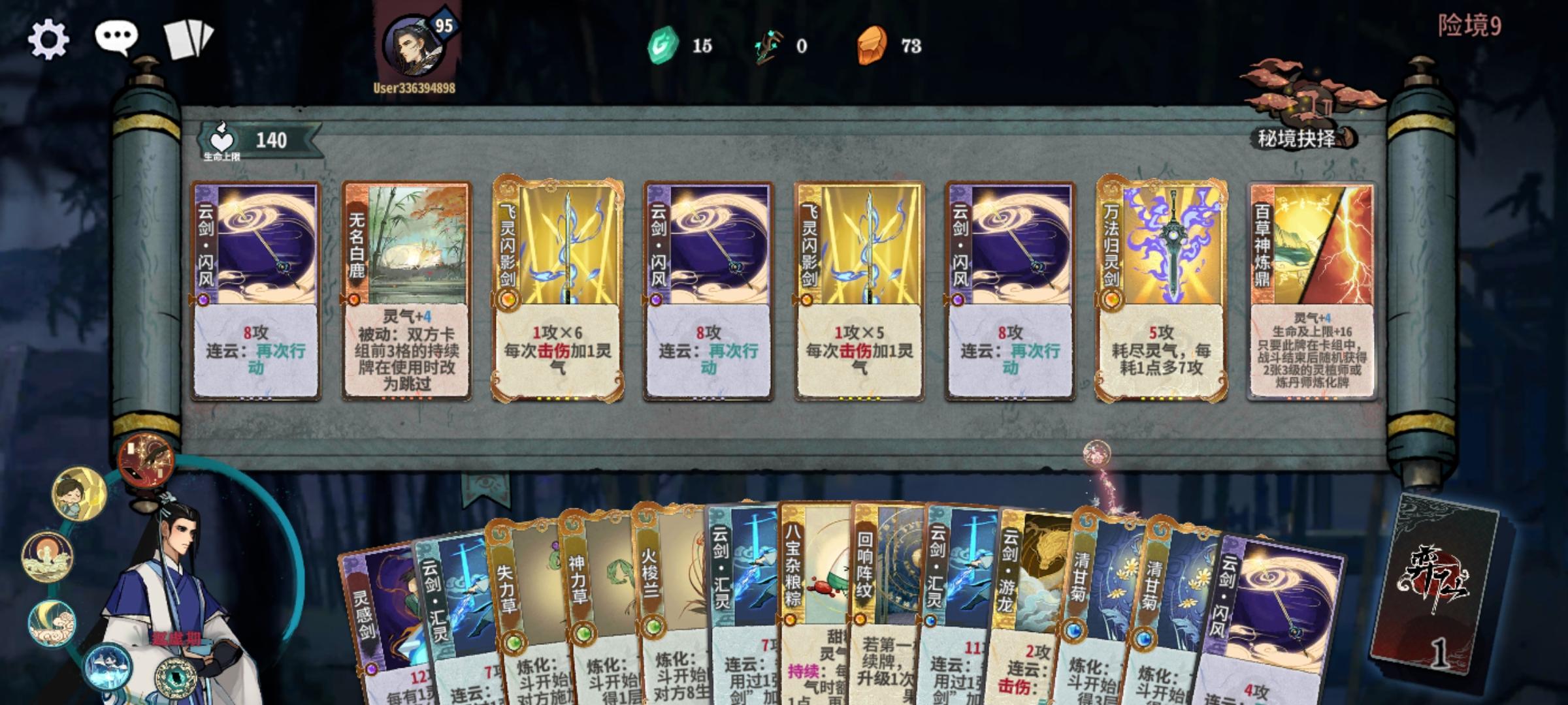 游戏昵称:情绪wUID:63901a33042f430a0df7505c优点:前期过度平滑,中期强势,后期不弱,十分完美的一套体系。缺点:吃D牌,前期的剑意牌没拿,中期梦境牌不顺硬玩会十分十分难受。版本梦境机制解析:成型阵容如下:副职业选择:灵植师:前期竹子补多段,中期有雪莲可针对,后期有灵田提上限。天赋选择:筑基期:锋利剑锋前期陆剑心的本命剑足够强,可以提高相对应的胜率。金