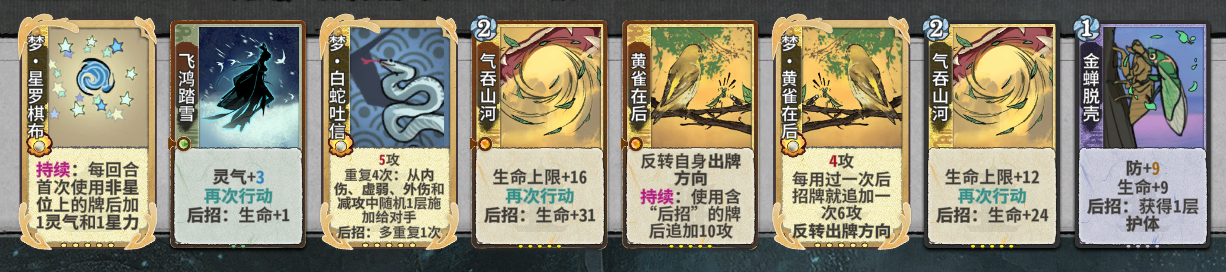 1.前言大家好,我是菜鸟玩家红尘有影,上个赛季吾行之道心榜排名第三,非常喜欢五行道盟的角色,经常研究各种五行角色的套路和卡组。因织梦赛季外面七星阁和剑宗肆虐,小弟在天梯被打得道心破碎,先有老鼠大人修为快如一匹马,小弟望尘莫及被一脚踢死,后有各种剑宗大人,剑意几刀砍小弟宛如砍瓜切菜,甚至还有七星阁各种仙女老登,小弟拼经全力也无法战胜,每当小弟卡组成形的时候,一首天音困仙区,天涯何处觅知音,小弟无奈