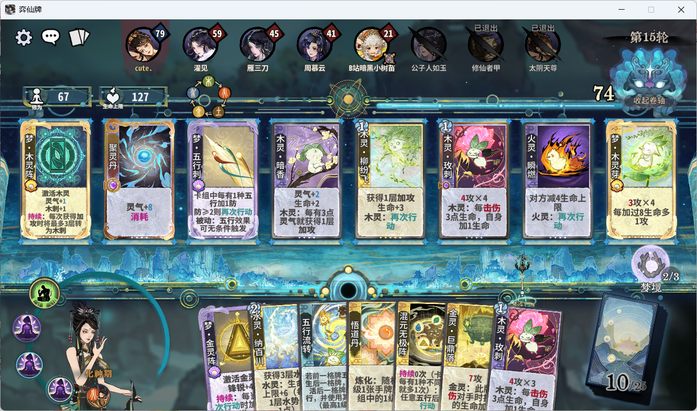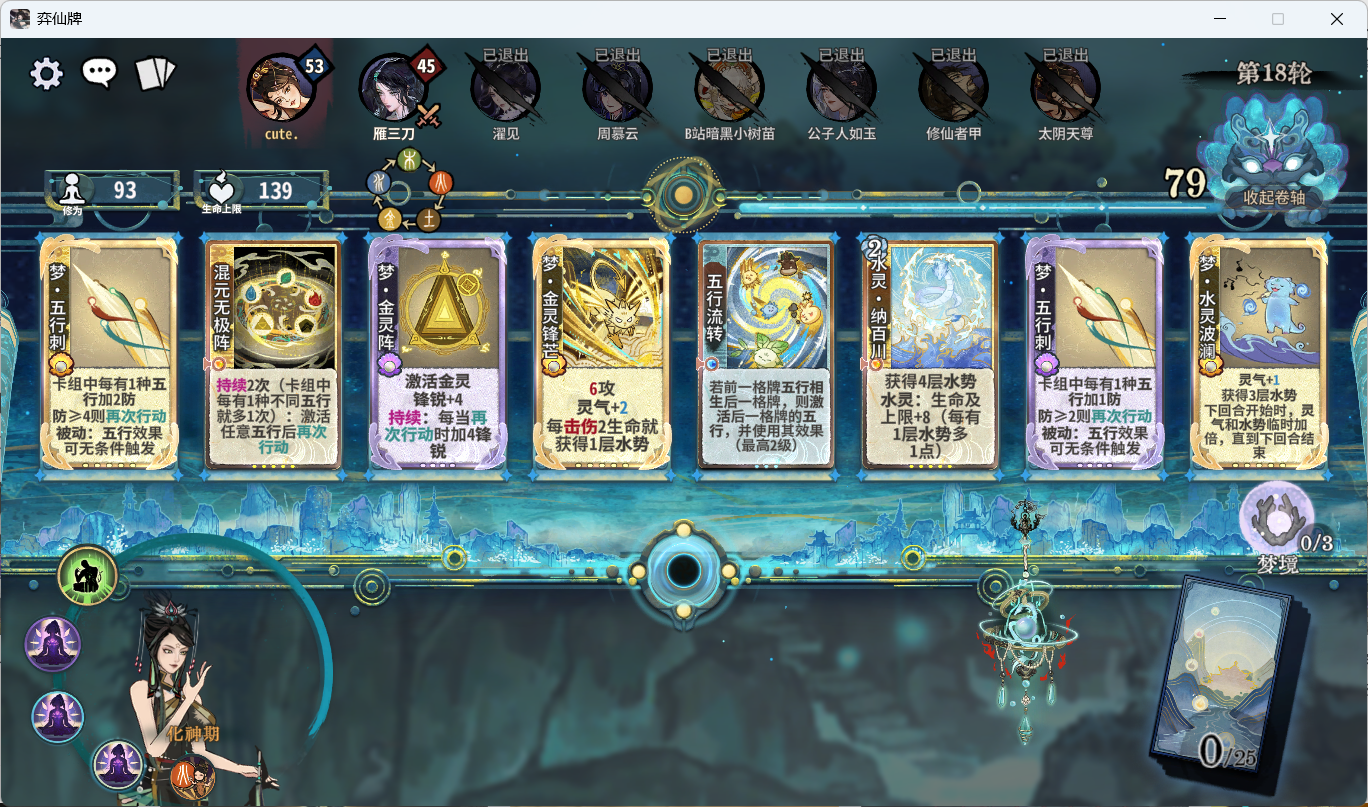 1.前言大家好,我是菜鸟玩家红尘有影,上个赛季吾行之道心榜排名第三,非常喜欢五行道盟的角色,经常研究各种五行角色的套路和卡组。因织梦赛季外面七星阁和剑宗肆虐,小弟在天梯被打得道心破碎,先有老鼠大人修为快如一匹马,小弟望尘莫及被一脚踢死,后有各种剑宗大人,剑意几刀砍小弟宛如砍瓜切菜,甚至还有七星阁各种仙女老登,小弟拼经全力也无法战胜,每当小弟卡组成形的时候,一首天音困仙区,天涯何处觅知音,小弟无奈