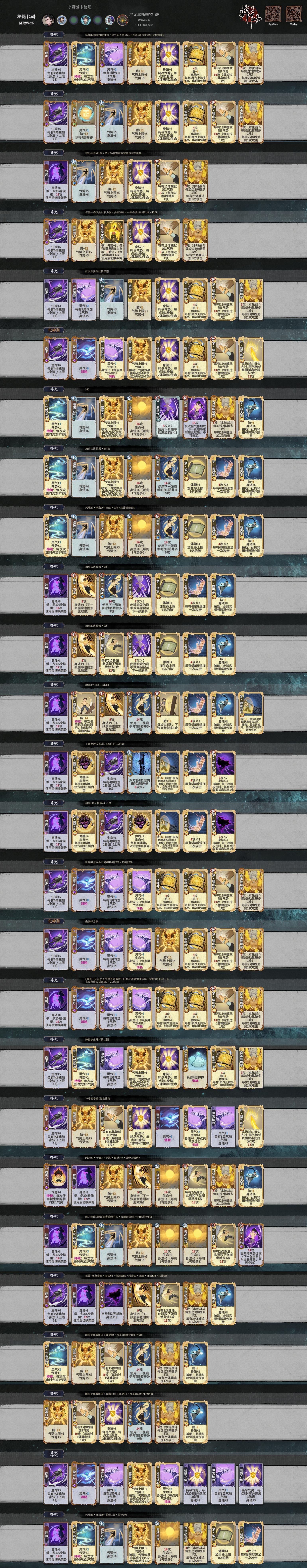 大家好我是新版本榜一南宫樱灵殿の懒惰虫UID:65b177b6f54766ac19c0a00f喜欢玩剑意爆发速杀的小伙伴们你们好我是丹南宫,我已50把内光速6200+分,你也来试试吧!前言由于本版本核心为梦牌,本攻略将给出金木水火土混元碎击和各种混搭的思路。攻略将分为金木水火土五个大板块,然后给出点评。攻略可能较长,请耐心观看。先给出南宫的所有成型卡牌,可能比较长不要怕,后面会进行逐一