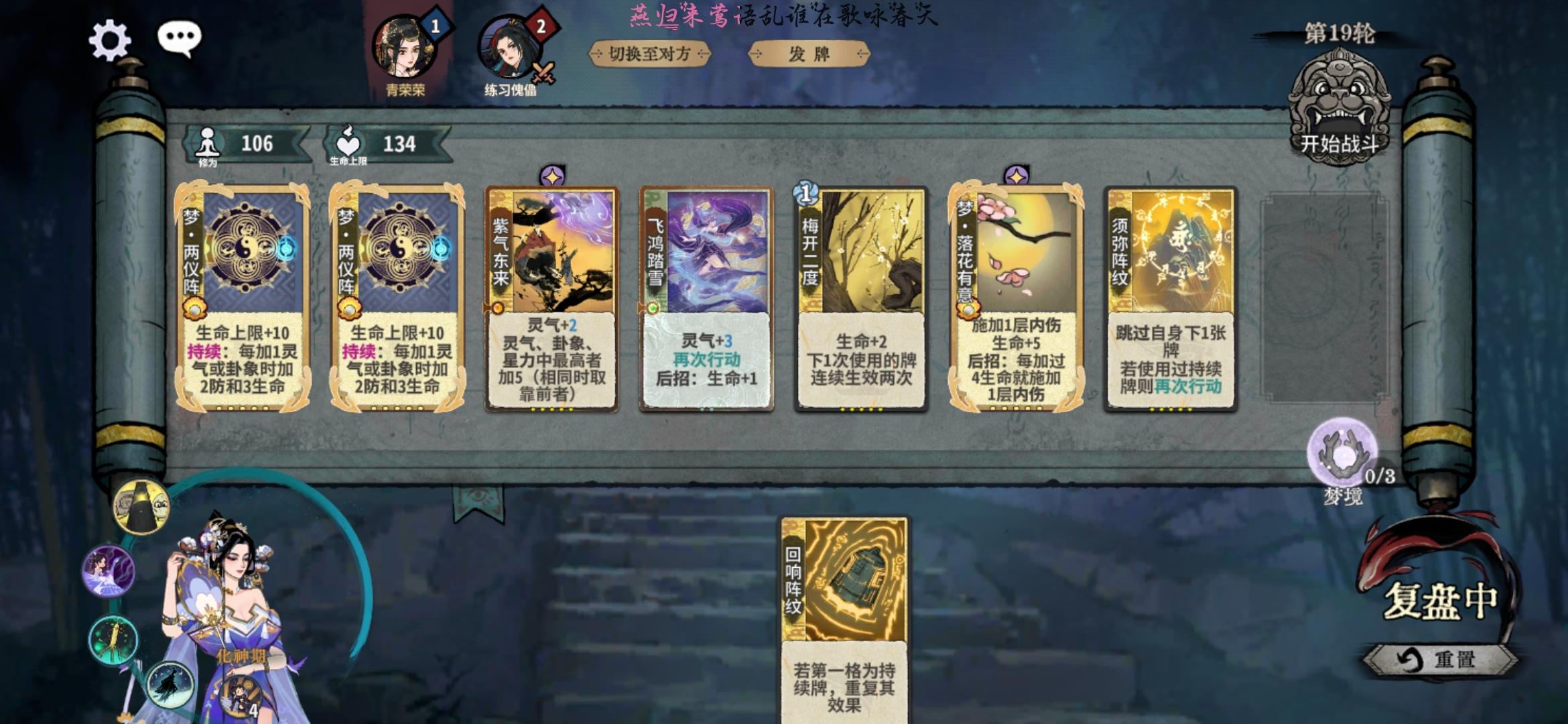 我是谭舒雁,我自己出题的时候觉得很绝望,这真的能过吗,所幸打过了。第三张是原本的搭配,后面出了个回响才给带上了 残局码:GMABZOJBG4
