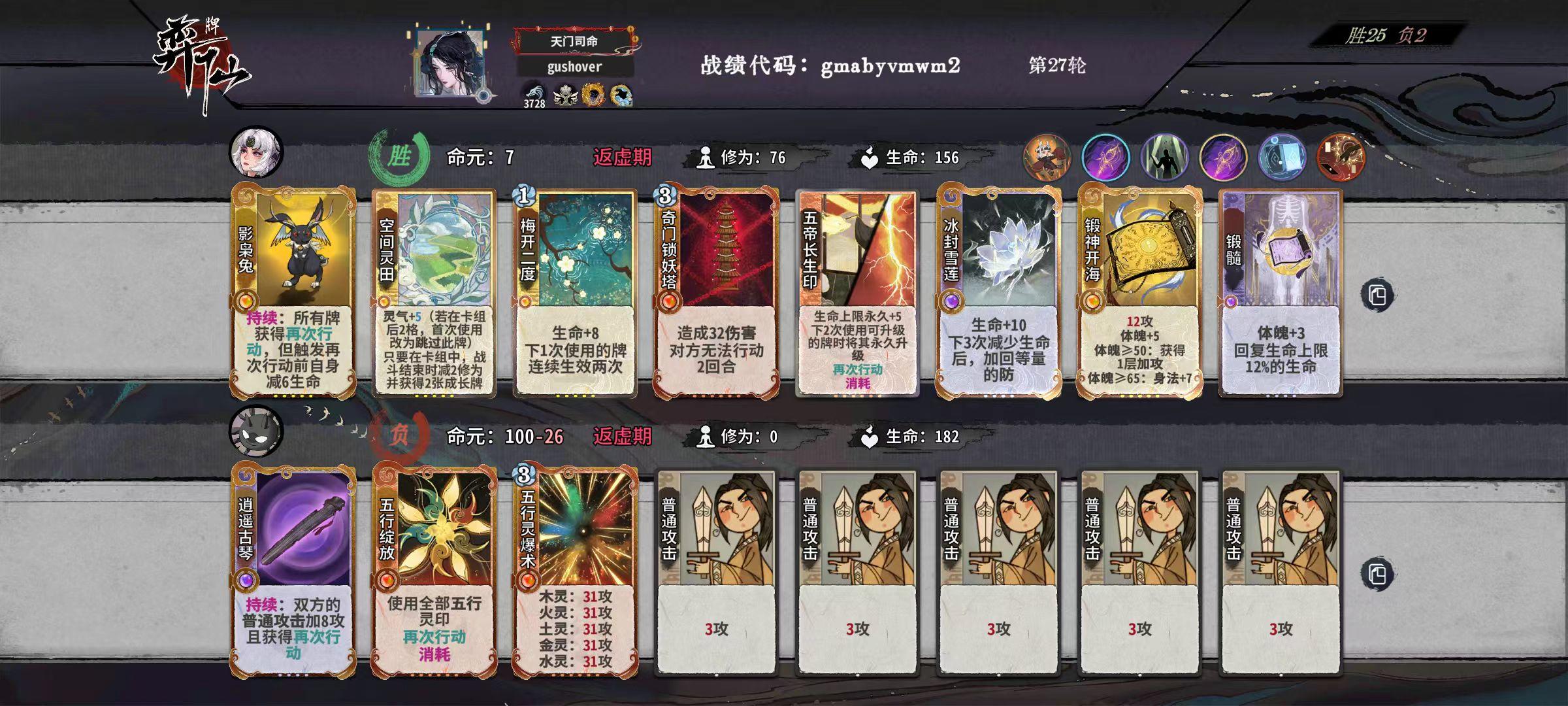 ——写在前面:弈仙牌打道心尤其是高分道心是一个很考验技术和心态的过程,如果自己玩的角色不是版本t0,那么势必会在上分途中遇到一些艰难坎坷,道心会产生一些动摇,但是只要自己玩法思路没有问题,操作水平也在线,那么相信自己,上分只是时间问题,遇到系统局咬咬牙接受,遇到福利局把握机会不可粗心大意,把每一局看做提升自己技术的机会,你我都能做到修得w分正果。这版本叶冥冥强度中等,在六千分以下强度较高,无脑崩