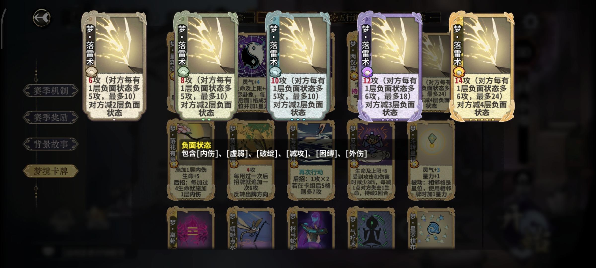 我花的赔钱指数在梦卡赛季达到了新高分享一下自救指南整体的混分思路就是化神之前尽可能提升质量,在第12轮之后开始接受自己谁也打不过的事实,祈祷对手抽不到key牌,等到4个人出局就可以美美开香槟等待下一局了💅第二轮上筑基拿木印,副职炼丹师。第三轮开始D梦卡,根据梦卡和道韵定阵,确保元婴期和化神初期有足够的战力如果来了梦木灵阵直接定阵,从金丹期开始全部拿修为。如果道韵有答辩,金丹期D一张泉涌,也