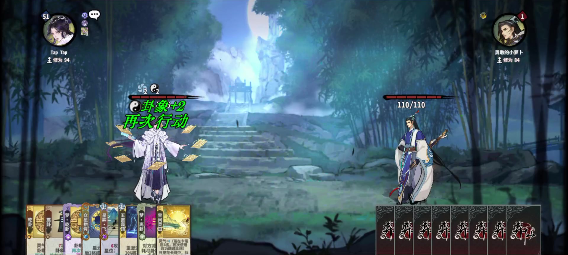 真绷不住了,这是我玩这游戏的第二把,我只能说这把天命在我,虽然没看攻略但是看到剑意可以加伤外加多重攻击这玩意我就知道该怎么整卡组了,也是非常的幸运,可以看到加剑意的全是三星卡,最后又给我来了一张加80%剑意的卡,再叠加那张无视防御以及返还剑意压低血量,最后连击卡伤害爆表,达到了160的伤害,一张卡下去对面倒欠我100多滴血,真的绷不住了