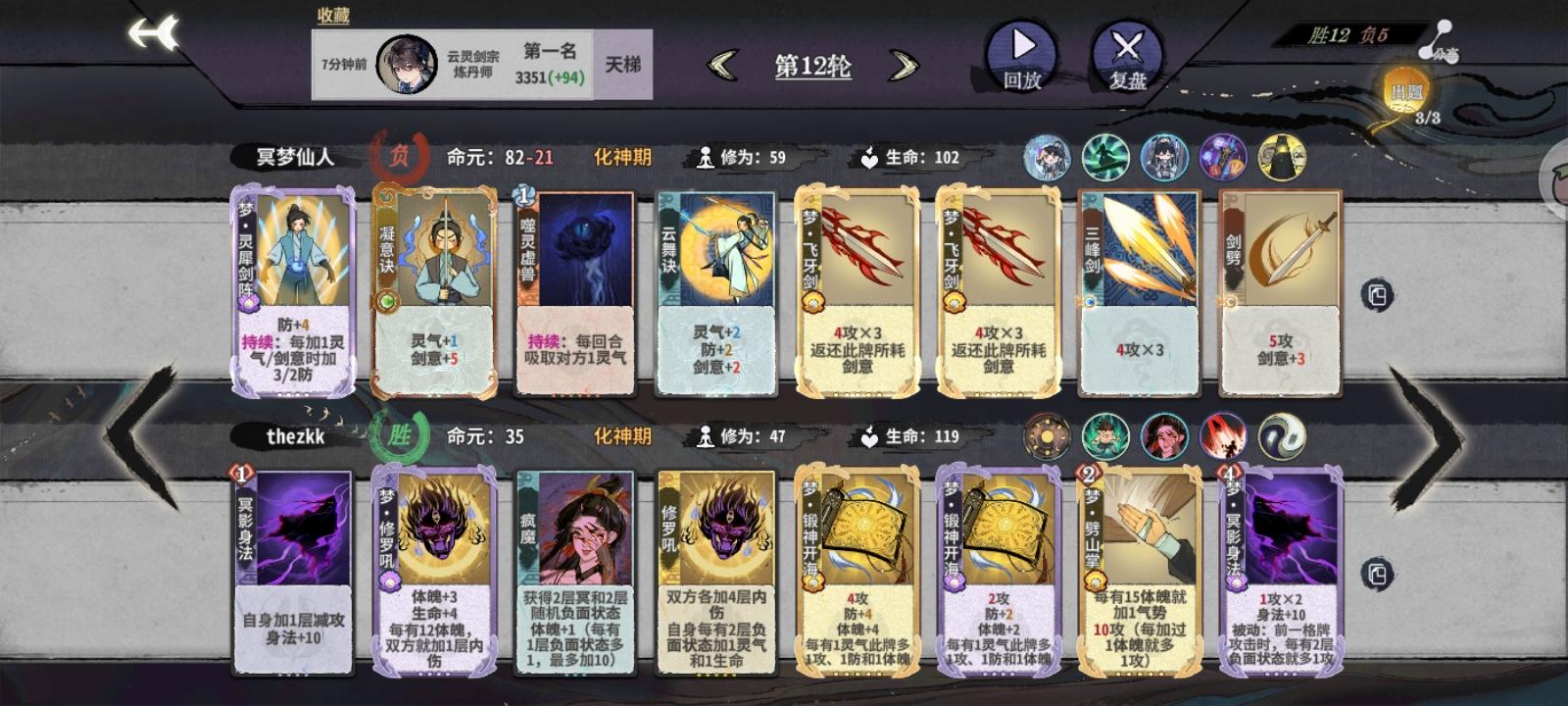 我花的赔钱指数在梦卡赛季达到了新高分享一下自救指南整体的混分思路就是化神之前尽可能提升质量,在第12轮之后开始接受自己谁也打不过的事实,祈祷对手抽不到key牌,等到4个人出局就可以美美开香槟等待下一局了💅第二轮上筑基拿木印,副职炼丹师。第三轮开始D梦卡,根据梦卡和道韵定阵,确保元婴期和化神初期有足够的战力如果来了梦木灵阵直接定阵,从金丹期开始全部拿修为。如果道韵有答辩,金丹期D一张泉涌,也