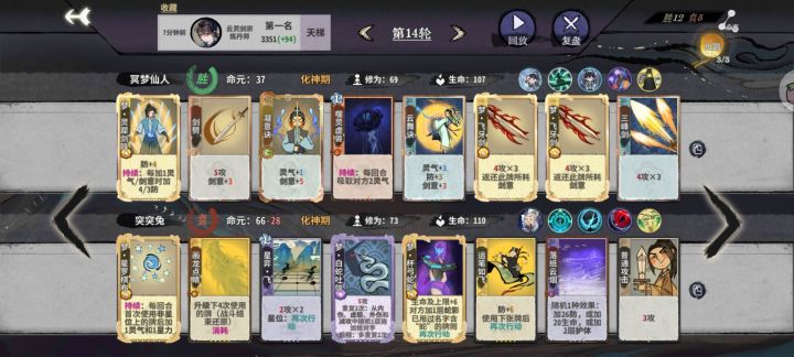我花的赔钱指数在梦卡赛季达到了新高分享一下自救指南整体的混分思路就是化神之前尽可能提升质量,在第12轮之后开始接受自己谁也打不过的事实,祈祷对手抽不到key牌,等到4个人出局就可以美美开香槟等待下一局了💅第二轮上筑基拿木印,副职炼丹师。第三轮开始D梦卡,根据梦卡和道韵定阵,确保元婴期和化神初期有足够的战力如果来了梦木灵阵直接定阵,从金丹期开始全部拿修为。如果道韵有答辩,金丹期D一张泉涌,也