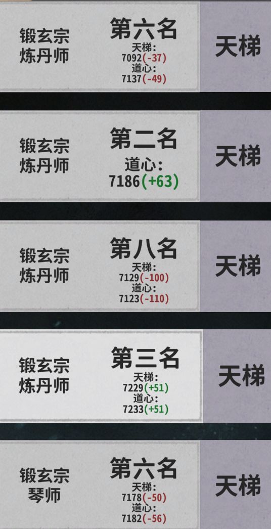 10轮上元婴 13轮上化神梦牌不来成套的一张用不上。体魄牌还没放就被秒。消耗刚放完就被四动。修玄被落雷杀,30身法被困,满级百杀打八点伤害,来斩魄没有蓝放。好不容易化神被同一个人本体+心魔满入两次直接死