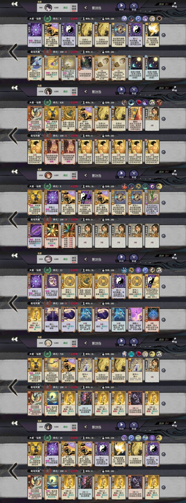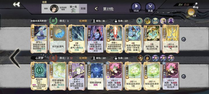 10轮上元婴 13轮上化神梦牌不来成套的一张用不上。体魄牌还没放就被秒。消耗刚放完就被四动。修玄被落雷杀,30身法被困,满级百杀打八点伤害,来斩魄没有蓝放。好不容易化神被同一个人本体+心魔满入两次直接死