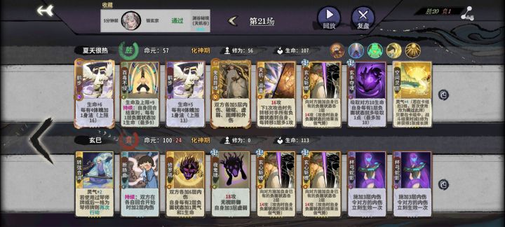 10轮上元婴 13轮上化神梦牌不来成套的一张用不上。体魄牌还没放就被秒。消耗刚放完就被四动。修玄被落雷杀,30身法被困,满级百杀打八点伤害,来斩魄没有蓝放。好不容易化神被同一个人本体+心魔满入两次直接死