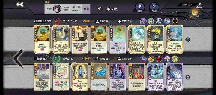 战绩代码:gma9t372sr请教一下大佬们,第14轮和第16轮,第14轮博弈失败,对面上了困仙,复盘看着对面摆牌倒是能解,那如果是对局要怎么博弈?第16轮主要是金水这一套可以打得过吗?怎么打?流转梦聚炎和合八荒后手,流转暗香和燎原并随机到先手这两套都可以。对局时不知道怎么没选大好局势犯蠢了