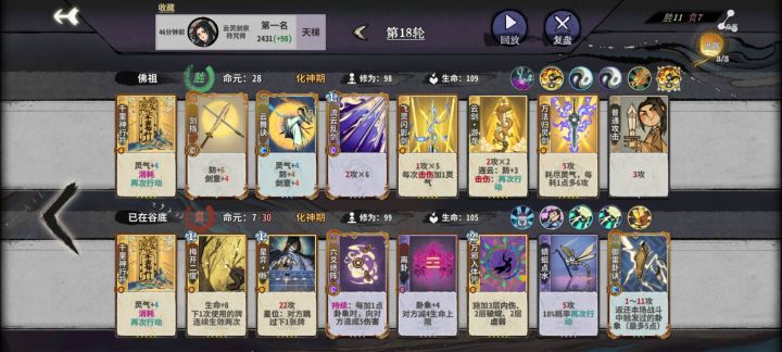 本赛季推荐副职:灵植师/画师 得益于吴策瞒天过海仙命的优势,在本赛季梦卡后招牌较多的情况下能够提前触发效果,因此后招体系又焕发新春,这也导致七星阁内战在相同卡组且同等质量下能立于不败之地。 本期攻略主要讲成型公式,如对过渡期较弱的道友可以查看过往赛季吴策攻略。吴策的角色定位是在元婴以前跟谁对战都能不弱下风,经常会出现112血到10轮,所以前期的过渡梦卡仅起到锦上添花作用。画: 画师的主