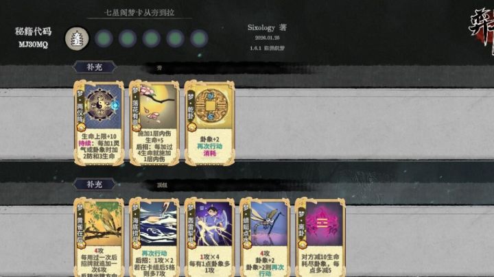 游戏昵称:Sixology UID:65ae0577ca62773dad69d471大家好,我是两赛季万分风绪,目前炎尘榜一Sixology这次给大家带来一篇七星阁梦卡强度评价,综合过渡强度和后期强度。其中很多卡实际强度,会因为玩的角色不同产生较大差异,请各位读者结合自己的角色及文中分析合理判断。后续赛季更新如果加了新卡,本文也会实测后根据环境更新。评级大致标准夯:在不同