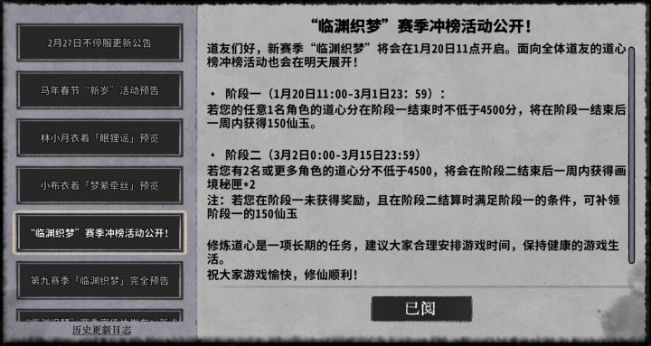 道友们好,《弈仙牌》将会于 3 月 12 日 14:00 进行不停服平衡性调整,请注意更新时间,避免影响到你的对局。