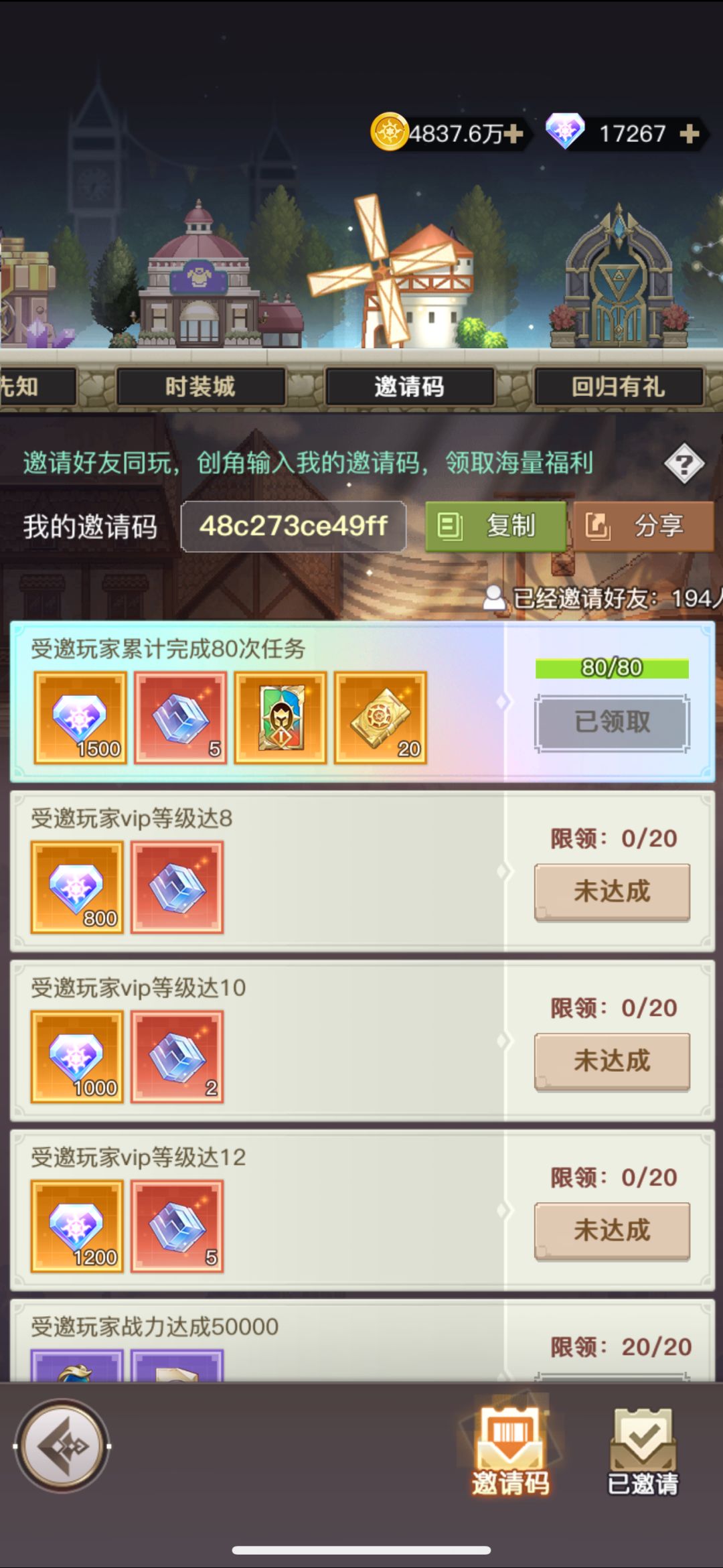 已邀请194人满级邀请码,嘎嘎欧皇