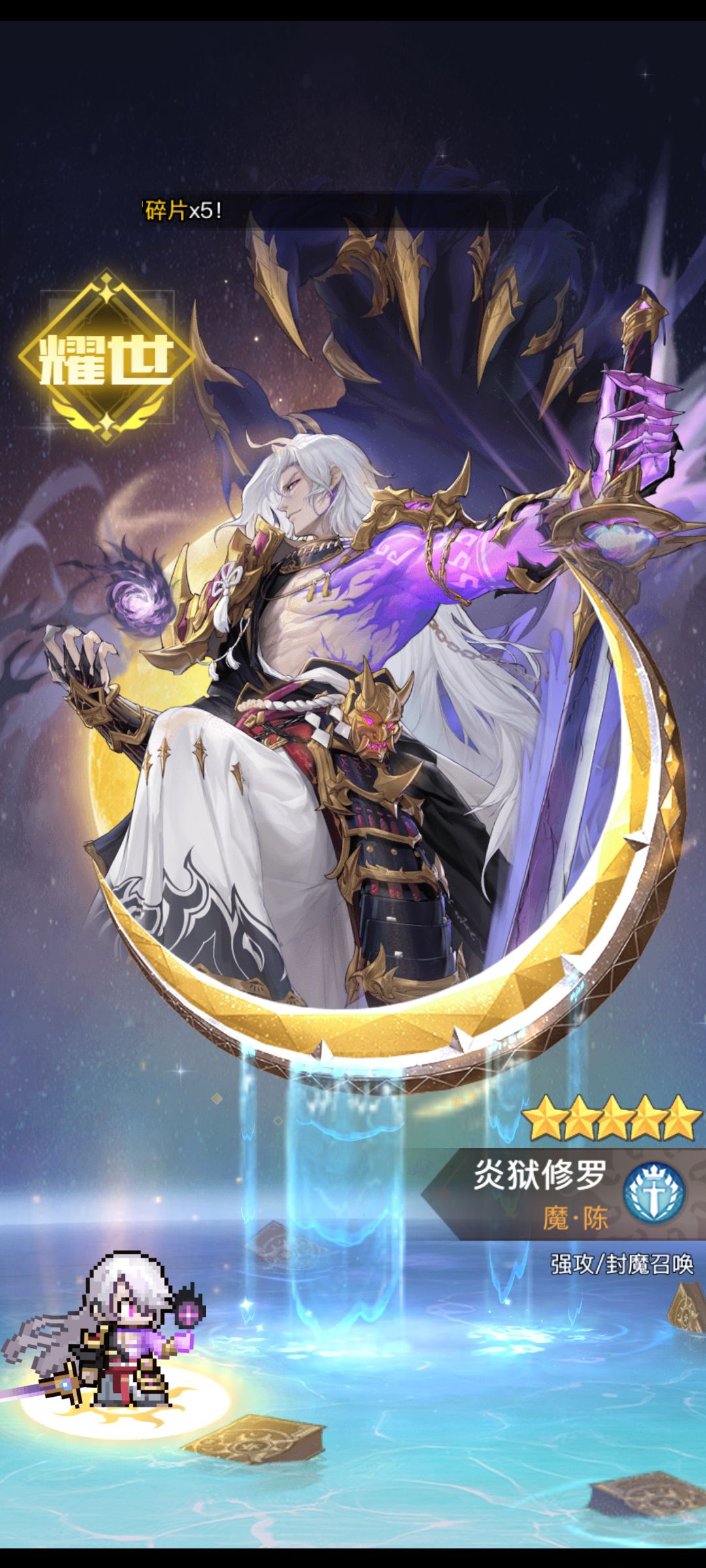 达到120级时可开启圣武,和秘灵类似,秘灵是在每回合的刚刚开始时发动,而圣武是在每个回合的结束时发动。 通过赤焰龙晶可以抽取圣武碎片,小概率能直接出完整圣武,也有和秘灵类似的累计奖励和特权。 除此之外,120级在无尽之海中开启的星海奇航也是获得圣武碎片以及圣武强化石的重要途径。 瑶光镇楼!(*σ´∀`)σ 圣武也分为紫色橙色和红色。 其中紫色圣武技能都没啥用,主要用来增加基础属性、解锁图鉴以及共鸣