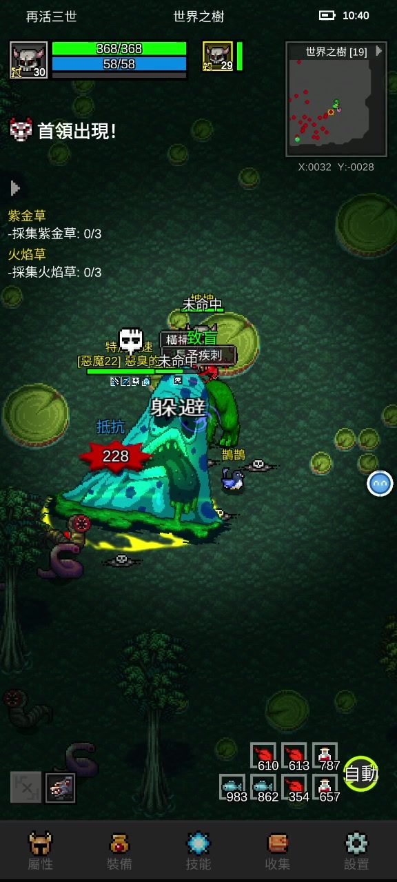 我打的时候是16级,不过个人觉得只要装备差不多,14级也能过 重点,装备特效冰封甲 加点,体力加到120-130左右(看个人情况),其余除了佩戴装备必须的力量属性,全部加敏捷 技能(图中技能加点只是挂机时候点的),一级多重箭(遇敌释放),其余全点致命。一个暴击三四百,配合多重箭,运气好的话一个多重箭就能打八百多 装备,如图,毒抗越高越好(我是就叠了25的毒抗),boss打中基本也毒不了几滴血 药剂