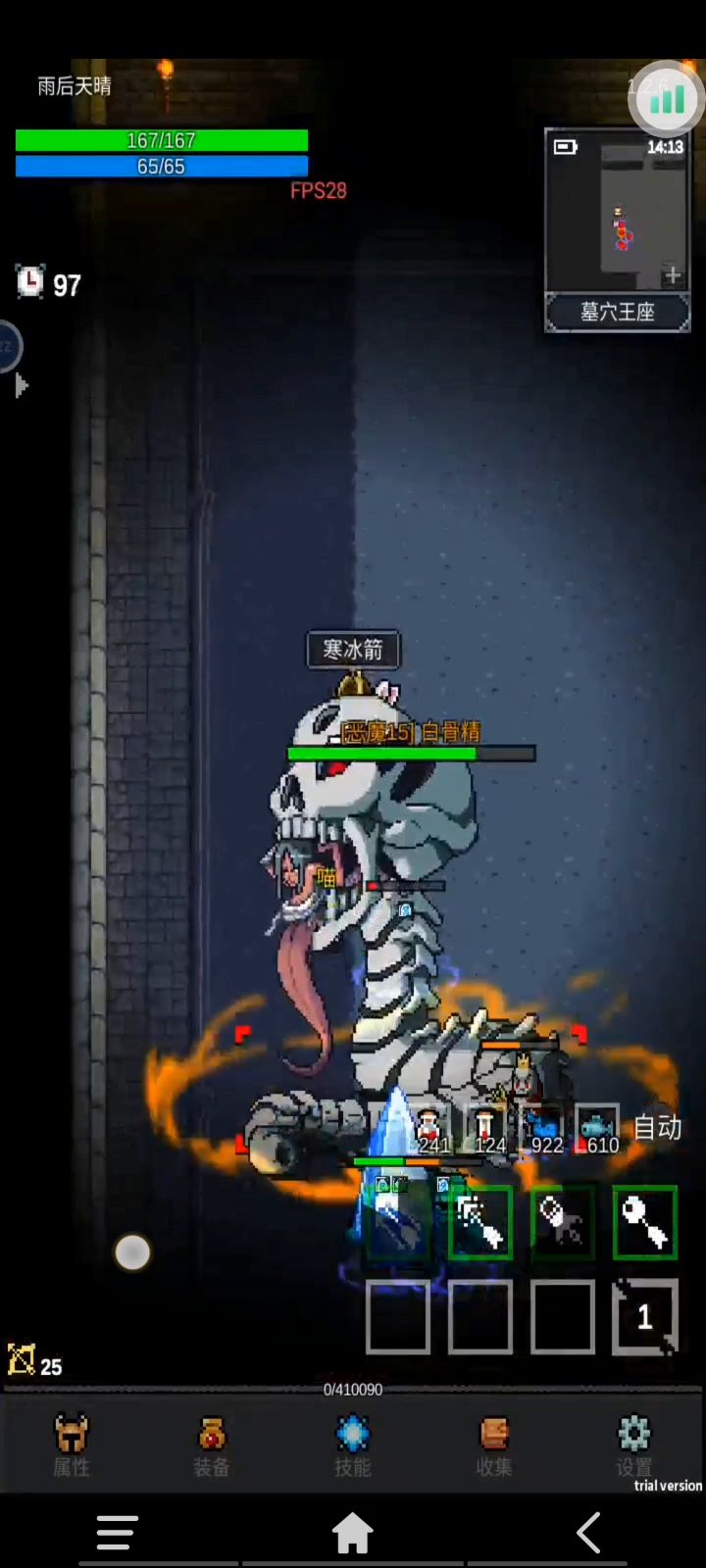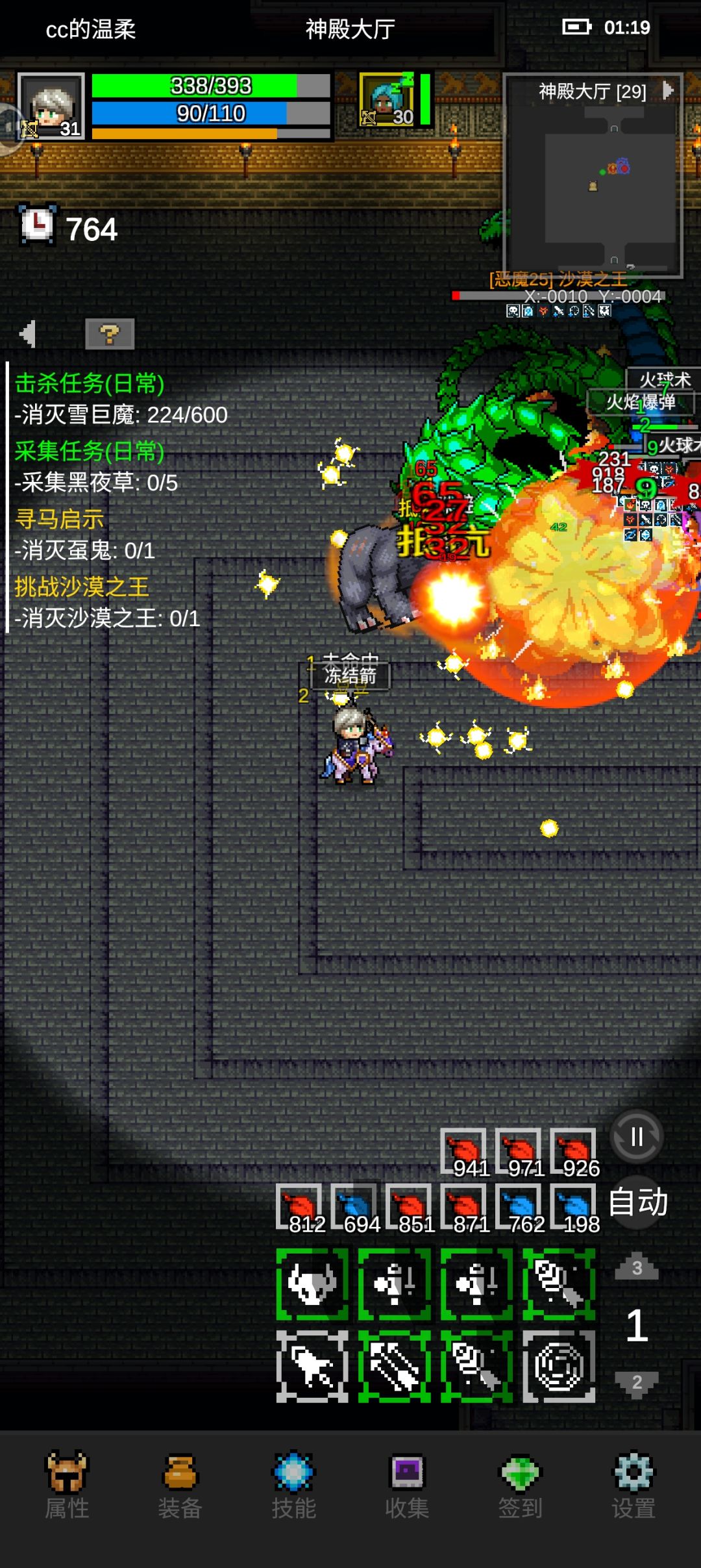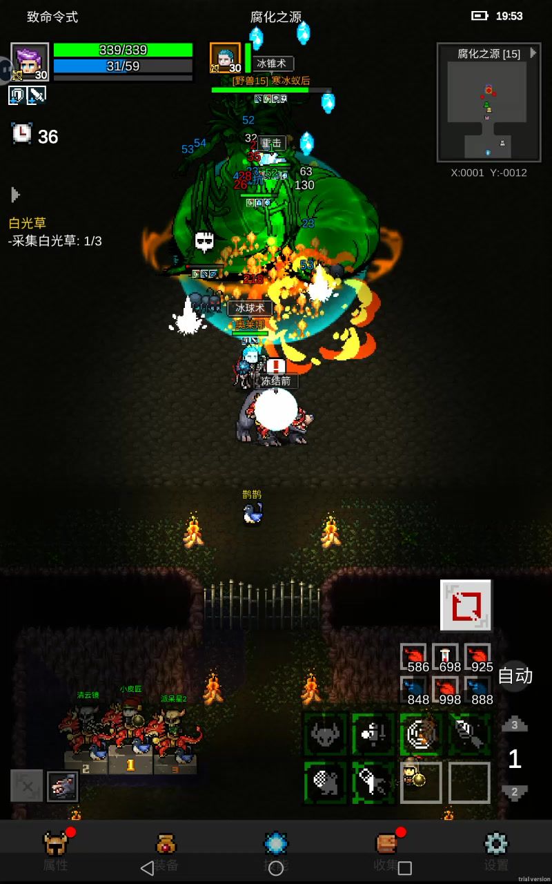 技能配置: 1.一号位五级多重 2.二号位一级寒冰箭 3.三号位两级燃烧弹 4.四号位两级爆炸弹 (其余技能点全点致命) 装备装备要求: 1.视也≥10(越大越好打)