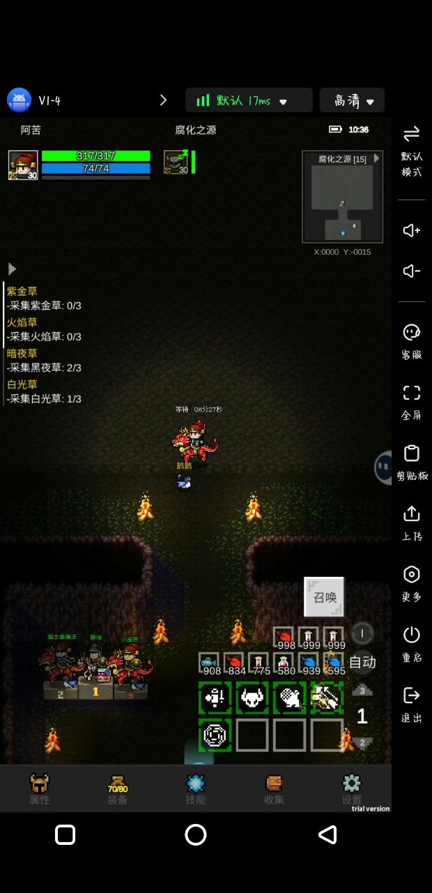 冰火哥的小怪会大量喷射冰箭,所以我这里带了3件减少冰冻时间词条的装备,这样能尽量防止走不动的情况。抗性我这里只堆了75冰火双抗,血量有个300多,火墙烫一下不会死,一定要带一件无法冻结的装备,我这里没有衣服,只能用腰带代替了。武器带伤害加深,有条件的带恶魔增伤词条 佣兵不用出战,没啥用 技能把烟雾,分身,熊的设置都改成手动,一定要这样,因为怪的技能特别多,暴风雨,陨石,火墙,火蛇,还有恐吓……,释