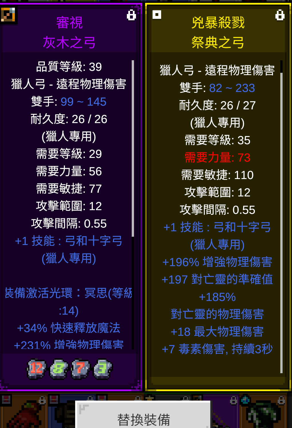 看过前两篇的兄弟应该对经验装有所了解,所以!把我们法师的一整套经验自修装备通过储物箱转给我们的新号战士。(二三幕商店可以刷新出来)。 1-15:把储物箱的经验装备(记得上锁)放入背包。与法师开局同理,做任务一点点把我们的装备穿上,前期点一级寻找药草,6级点一级投掷精通。然后属性点能穿武器换下盾牌的时候点一级双手投掷。(图1)。 15+:这个时候我们可以尝试去打虿鬼,厉鬼。 双投输出,嘲讽解恐惧。双