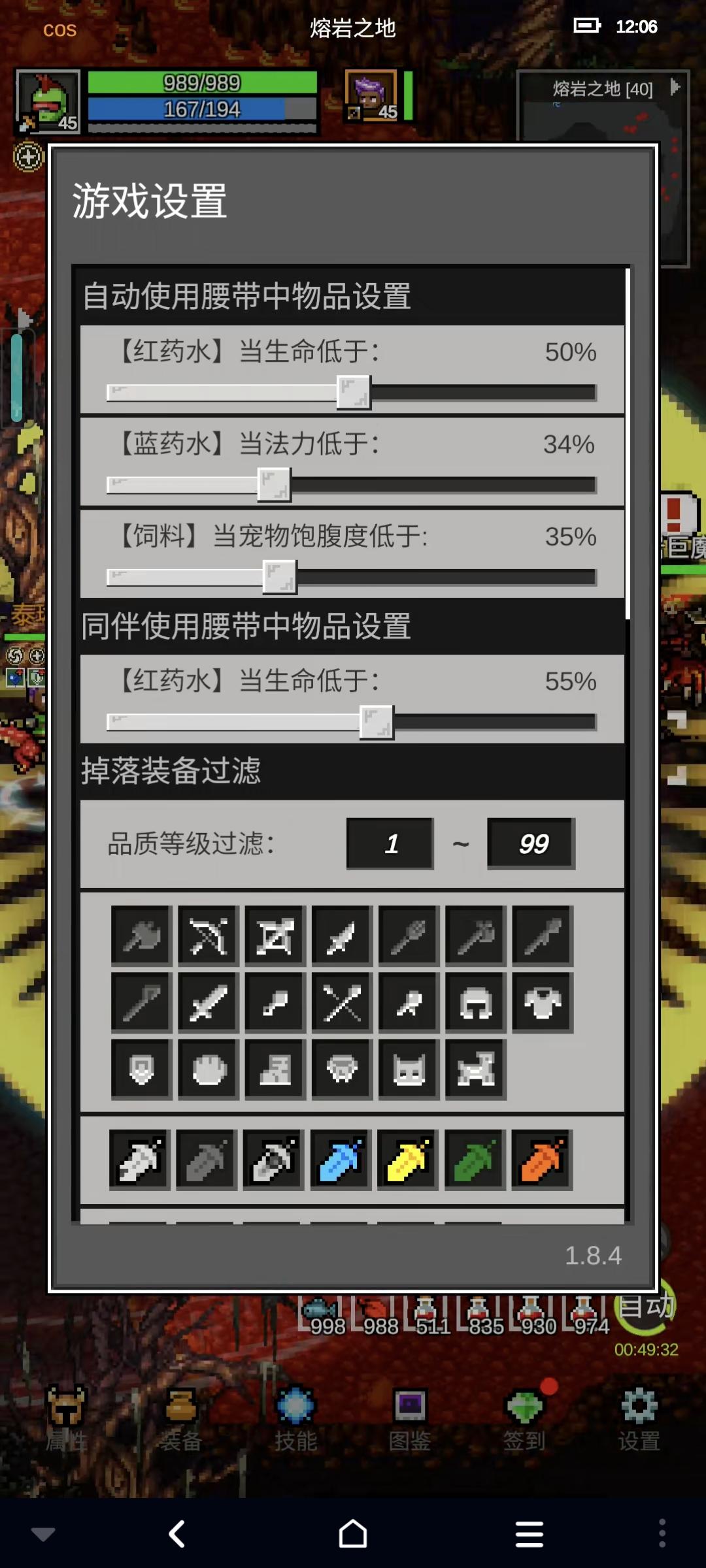 基本配置都在图上,自修50以下都可以,我的配置挂9个小时,一个小时平均佣兵加上战士110平中血药,战士伤害够也可以带3组叶子一组中红一组大红。佣兵装备直接加最大攻击,武器使用锋利,加视野准确装备, 加Buff后有700左右血几乎不会死,如果血量不够就带蛇🐍。战士装备恶魔歧视就行。重点是技能。你可以看我图,这个技能一定要按照我这样设置才是低消耗。在第五幕,狮吼功简直就是神技了,可以打断怪物