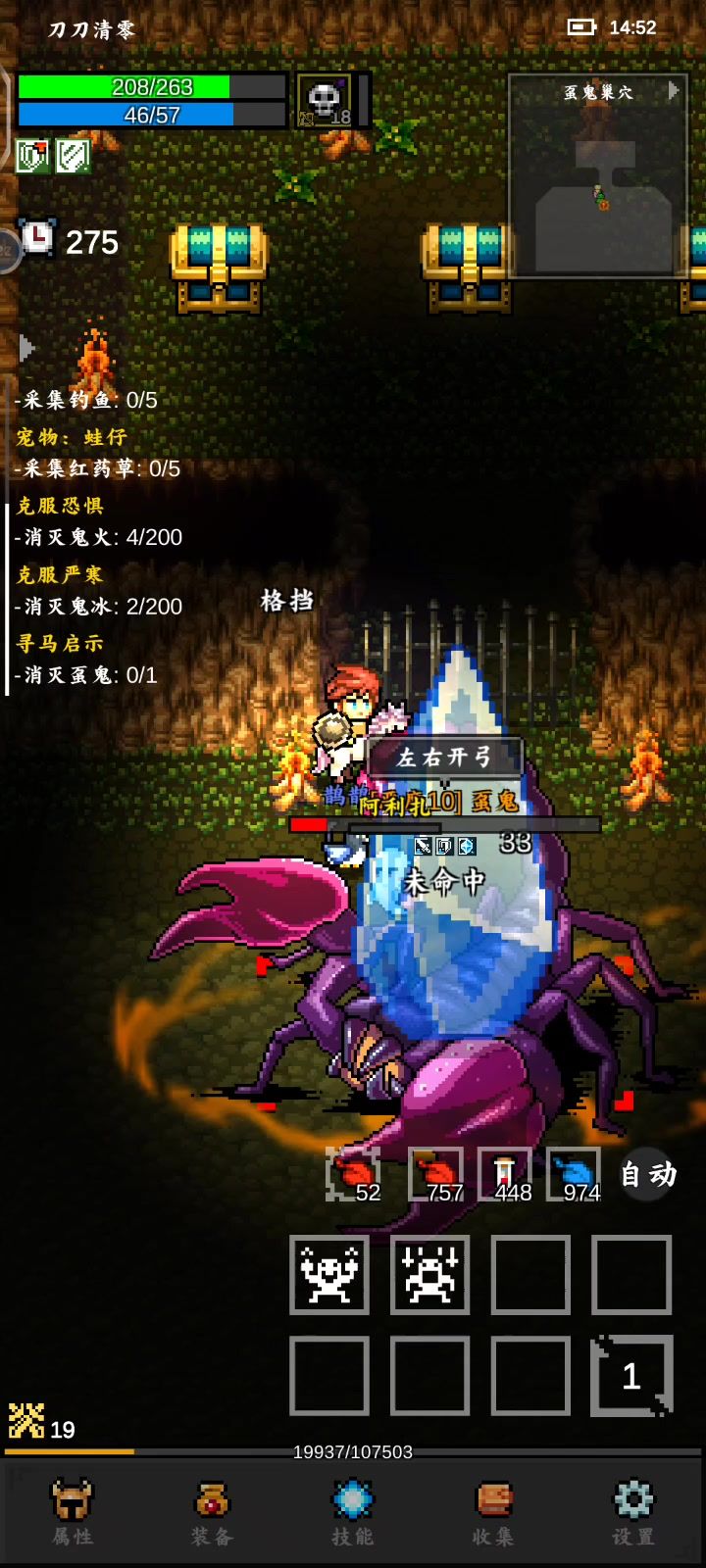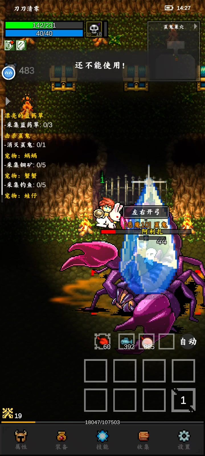 第一次过了的是个元素抗性特性boss,进了第二层我直接回城了,结果又要重打,第二次是个物理抗性boss,直接打不动,一开始想到的是换法杖来打,结果晚上清仓库都给分解了,又换了毒武器,没有好的,最后又想起这个佣兵……直接洗成血牛保他输出[表情_大笑]
