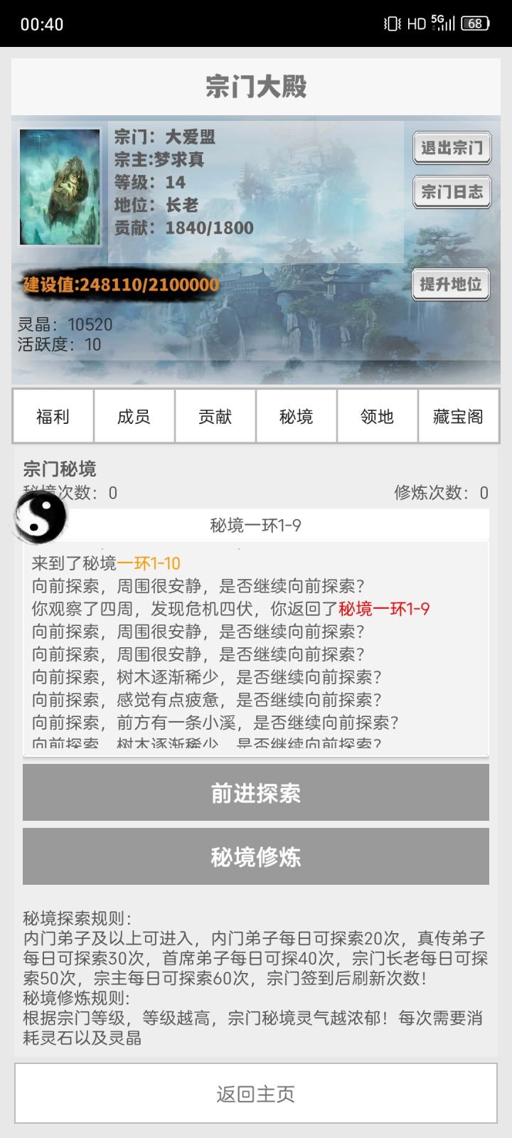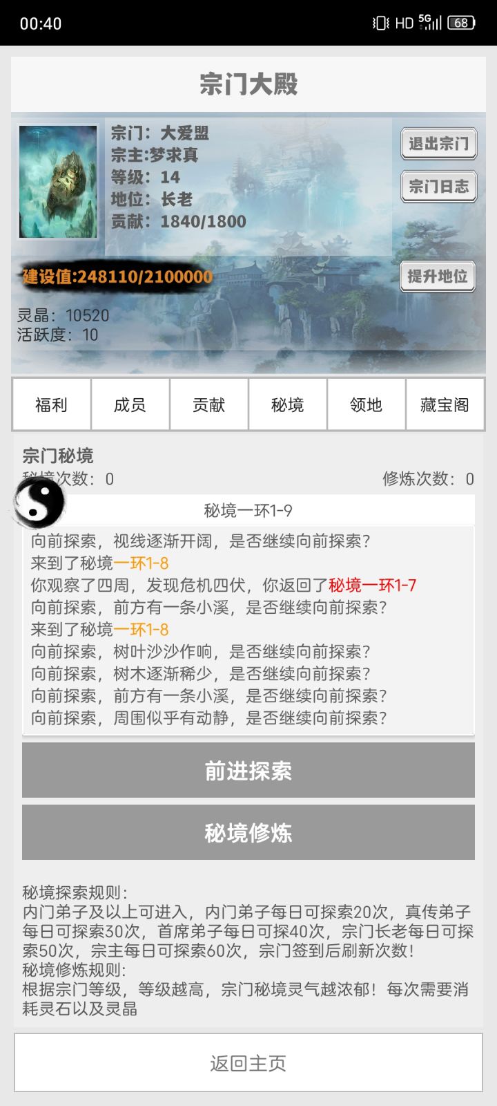 成长体验建议进宗门群,里面有前辈大佬给予的各种建议,帮助前期少走弯路。