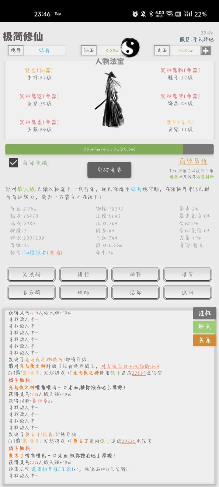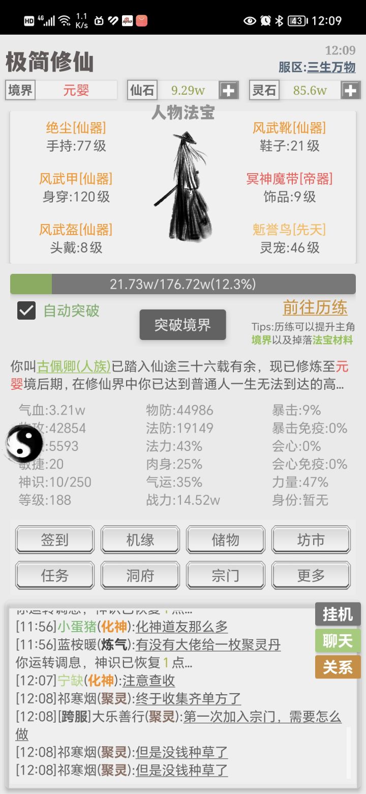 💎资源获取:只要脸皮厚什么都有前期过度超级丝滑玩了一天在大佬们的帮助下成功到达筑基中期有两件帝装(脸皮在厚点可以全帝装)感觉结单也是有可能的