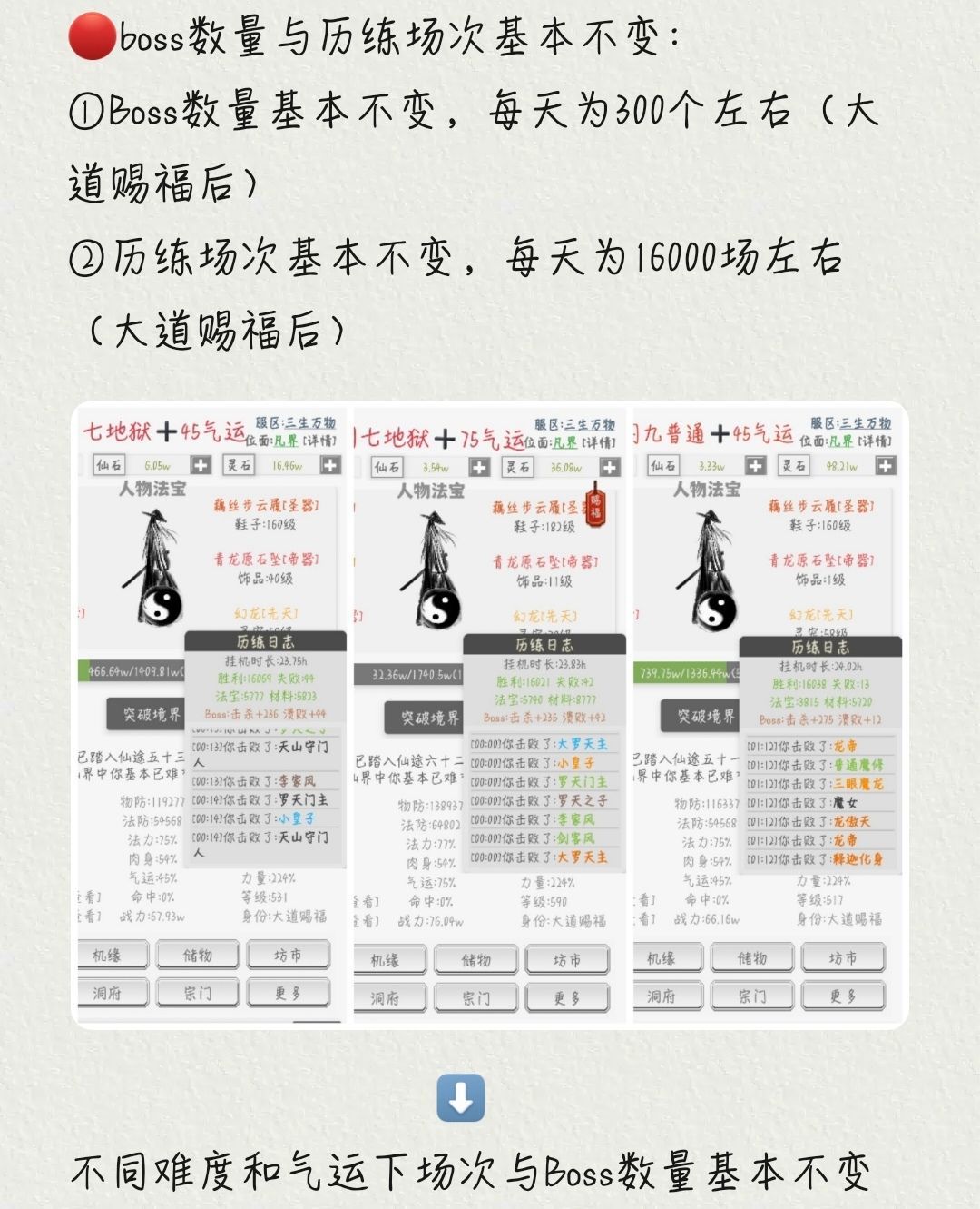 历练挂图建议➕探寻气运与历练的关系———————————————————— 历练该挂什么图一直是我的困扰,我看目前历练相关的攻略也讲的也不是很透彻,导致我之前玩的时候也是懵懵懂懂,所以做这一期是想彻底厘清气运与历练相关的关系,也是为了让萌新少走点弯路。 ⚠️历练挂图建议:优先挂地狱难度➕打Boss基本不会失败的图 理由:①普通难度比地狱难度装备掉落少了一半左右。②虽然普通难度掉落的装备质量更高但