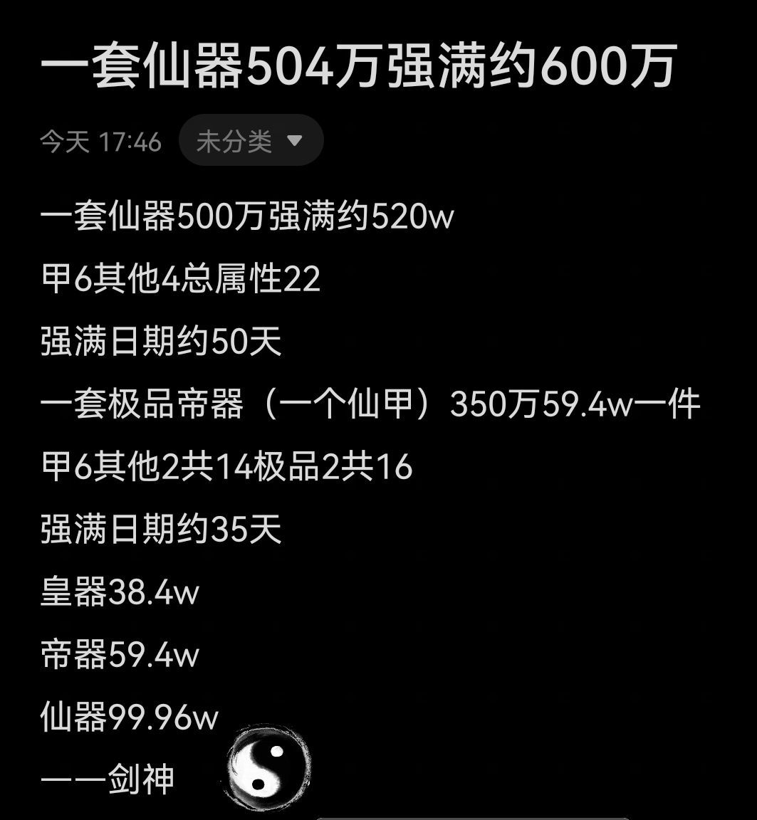 萌新初入极简,对于装备不知道怎么选择好,今天就来浅谈一下 ,如何选择装备。 一、装备分类 装备可以分为品质法宝(通常称普通)和品质套装法宝(极品,鸿运)。按等级从低到高为凡器—鸿蒙器(神器以上需要满级之后才能升阶,即神器140级后才能升阶圣器)。 二、各境界最高能穿装备 练气(目前一区无萌新卡在练气,故未测试), 聚灵(皇器),筑基(帝器),结丹(仙器),元婴(神器)。 三、装备来源 1.历练掉落