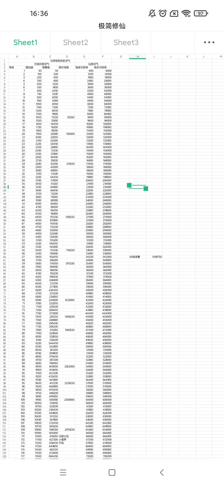 灵气升级数值与获得数值