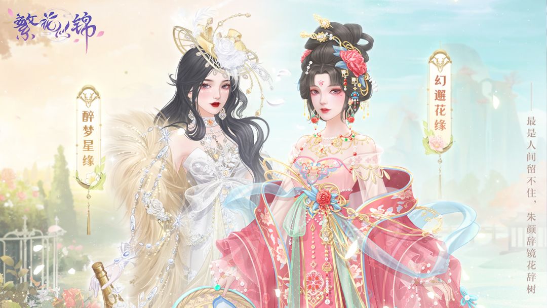 仙主大人们好ヽ(*´з`*)ノ 今天给大家带来的是「镜花绮缘」限定套装——幻邂花缘、醉梦星缘~ 目前活动仍在进行中,喜欢的仙主大人千万不要错过哟! ❀❀❀幻邂花缘❀❀❀ 芙蓉不及美人妆, 水殿风来珠翠香。 谁分含啼掩秋扇, 空悬明月待君王。 她是万人眼中风华绝代的第一美人, 清歌妙舞,一颦一笑,无人能替。 演出谢幕,铅华洗尽,唯有此时是真我。 抬眼瞬间,铜镜映出她的面容, 前世今生共徜徉,灵魂相依