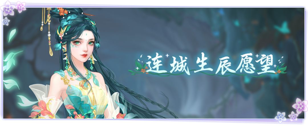 「连城生辰」愿望系列—愿望阁 贺君悦生辰,惟愿与君同 活动时间:03-17 00:00:00 至 03-23 23:59:59 领奖时间:03-24 00:00:00 至 03-24 23:59:59 ✿ 活动期间,于连城生辰愿望阁中使用连城-许愿签进行许愿,即可100%获得连城生辰限定CP套装:连城-奇渊迷藤、藤牵情绕各部件,限定背景:渊澄秘境;限定头像框:生生藤意;限定头像。 许愿签获取,请前
