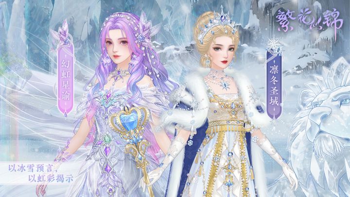 仙主大人们好(ෆ´ ˘ `ෆ)♡今天给大家带来的是「绮梦礼赞」套装——凛冬圣域、幻虹星谕~目前活动仍在进行中,喜欢的仙主大人千万不要错过哟!❀❀❀凛冬圣域❀❀❀茫茫冰原中,她身着华贵的深蓝冕服静立其间,冰狮昂首挺立在侧,鬃毛凝着碎冰泛光。指尖轻触冰狮额间,冰狮抬首喷吐霜雾,托举加冕之冠,霜气漫开——冰原绽满晶花,凛风呼啸似颂歌。风雪裹着柔辉漫过冰原,连远处冰峰都漾着柔光,驱散了冰原的凛