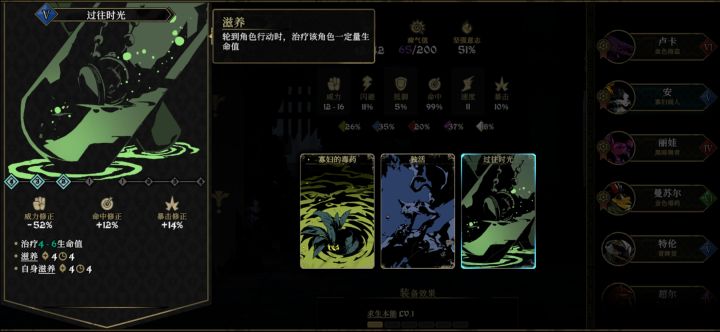 目前这套是比较流行的毒群攻流,110级装备一套蓝,基本没死过 狐狸技能主飞刀,守卫技能主挥砍,开局初始角色,一直用,做任务有升级碎片,守卫,打这个bs,除了守卫没一个满级,还是挺好打 鸡哥技能主剑雨,寡妇技能主加血,做任务招募比较容易获得。 压力太大别接任务就去到处逛,到达一个地点很快就消除了,沿途还有宝箱。 前期一定要苟住,打不过撤退去散步,也不要越级打,即使角色0血,压力没到200,也不会消失