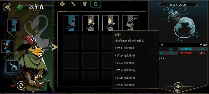 拿到蓝色装备后将会附带一些小特效,这里实际已经对战斗的影响开始体现了,比如我3件套加速度的,就能超过恶心的压力怪先手秒人,良性循环下来我中期甚至0压力过日常小任务,保底的下限奶妈也可以超速怪抬死门,所有跟输出挂钩的属性,命中是第一条,战斗里一个miss有多恶心大家应该也有所体会了,(点名鸡哥,4连击会被暴击和miss打断,输出是真的高,难受也是真的难受)小tips:所有英雄跟怪物是有5%保底的命
