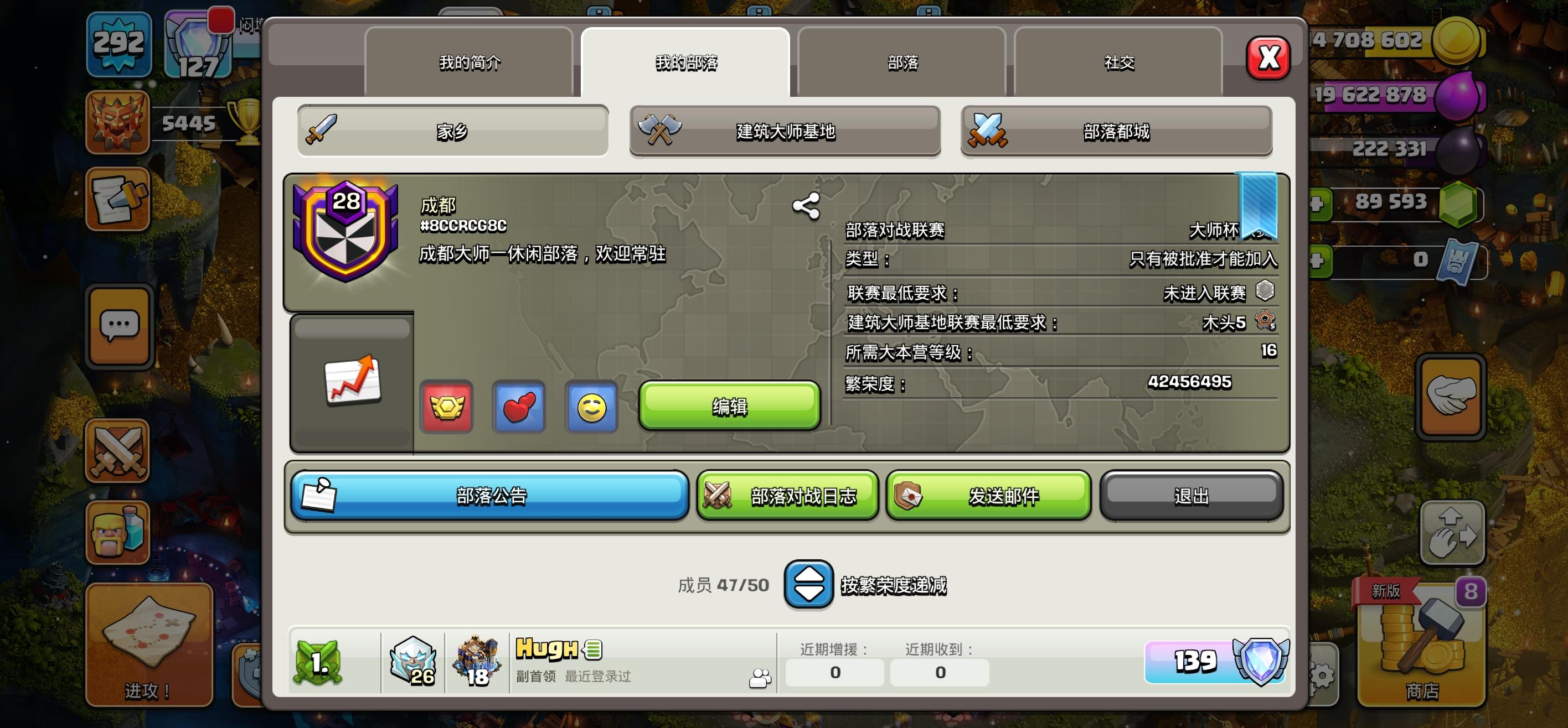 国服28级养老休闲部落,24小时奶,部落战连开全胜,都城10级,部落竞赛全满,联赛大师1,日常无要求,欢迎打矿石,养老,摸鱼朋友加入。请加游戏好友#LRG90L8G 或者部落#8CCRCG8C,目前2个位置。看钉选进群。