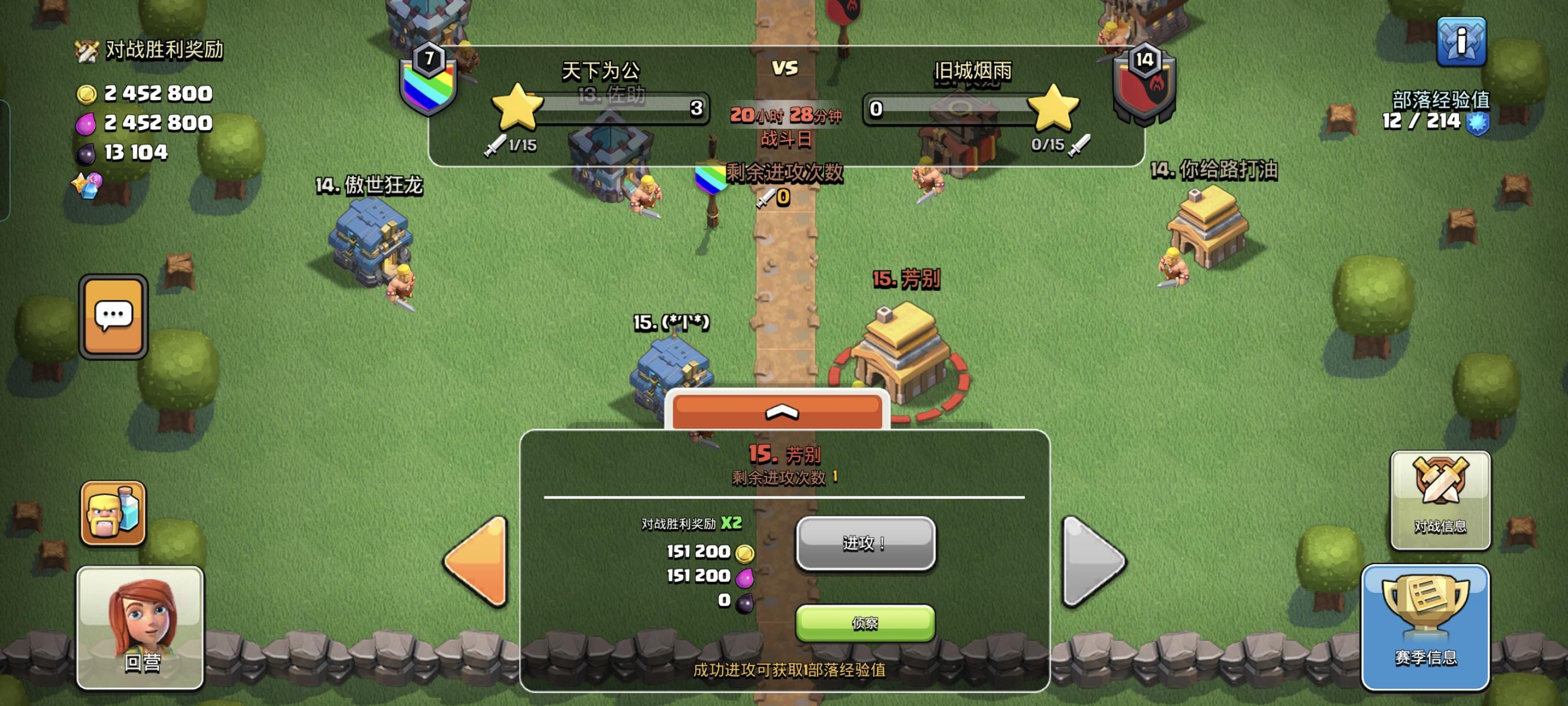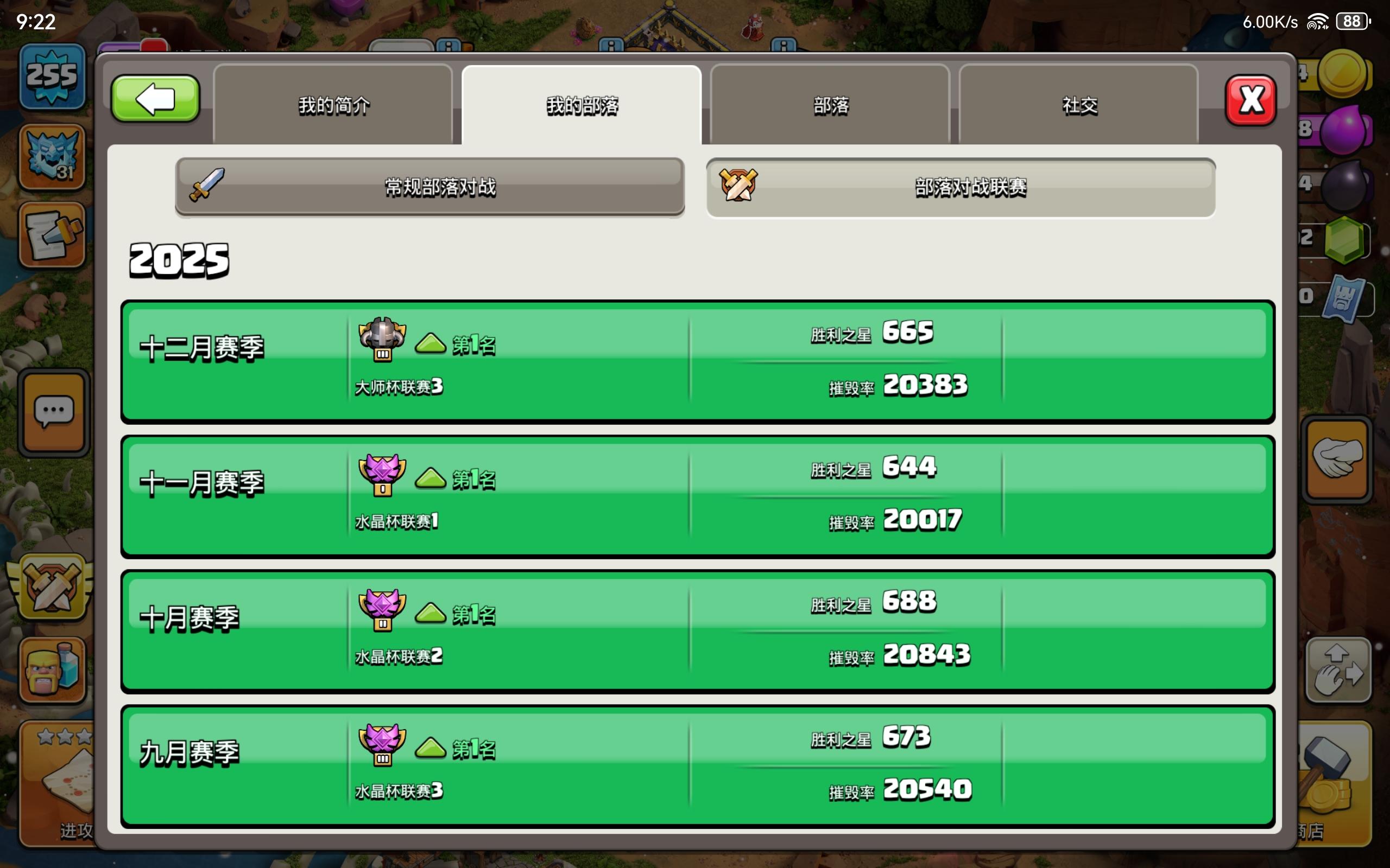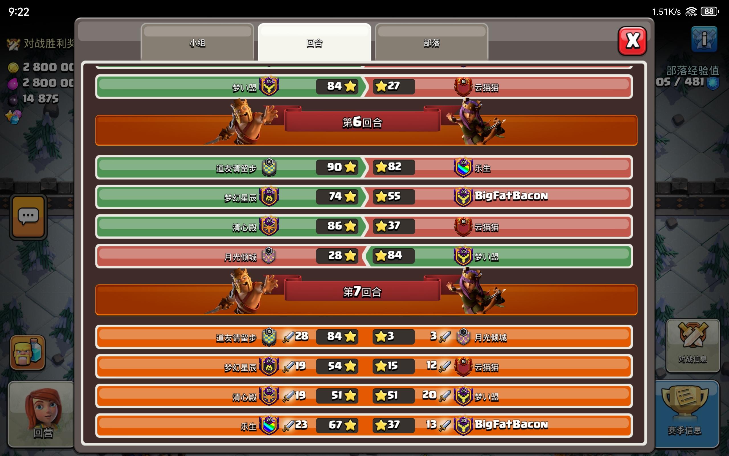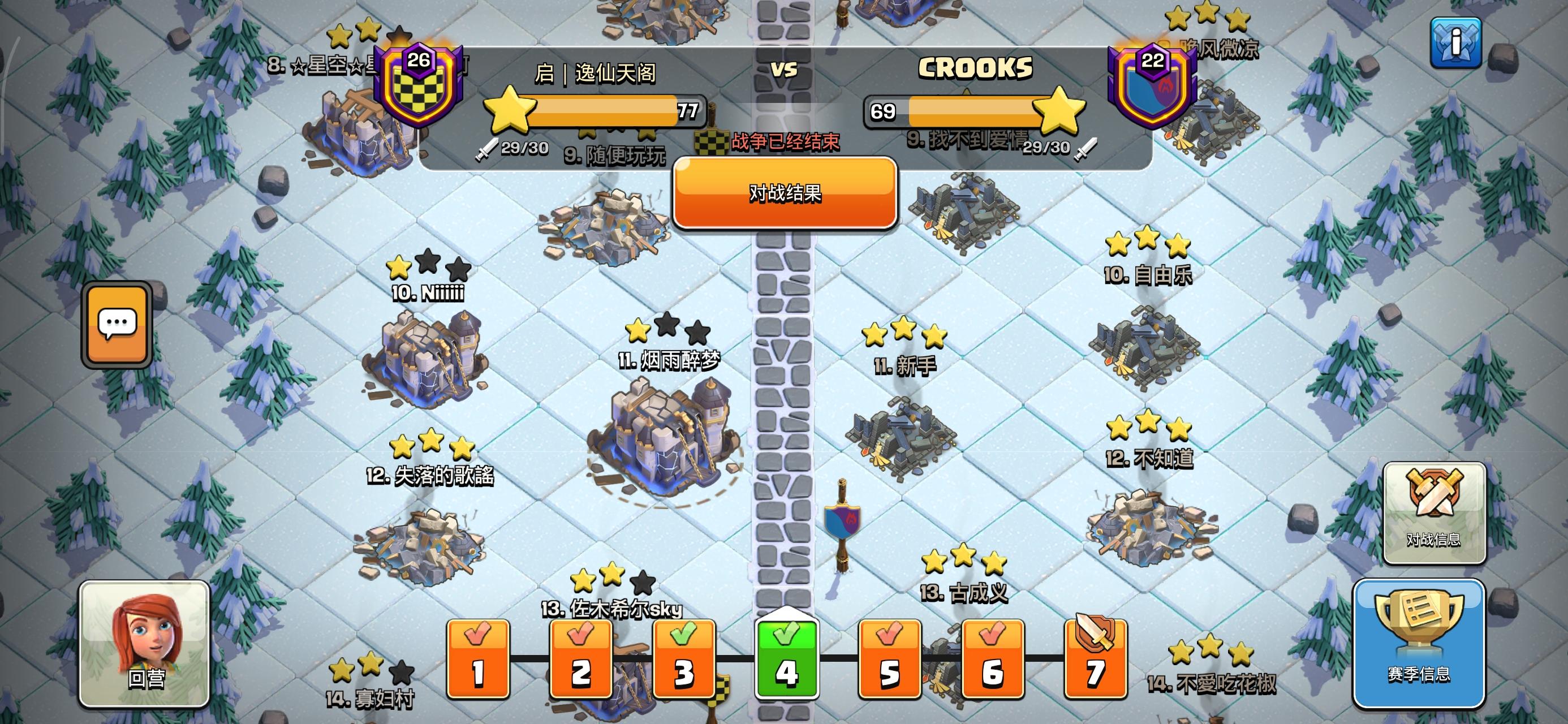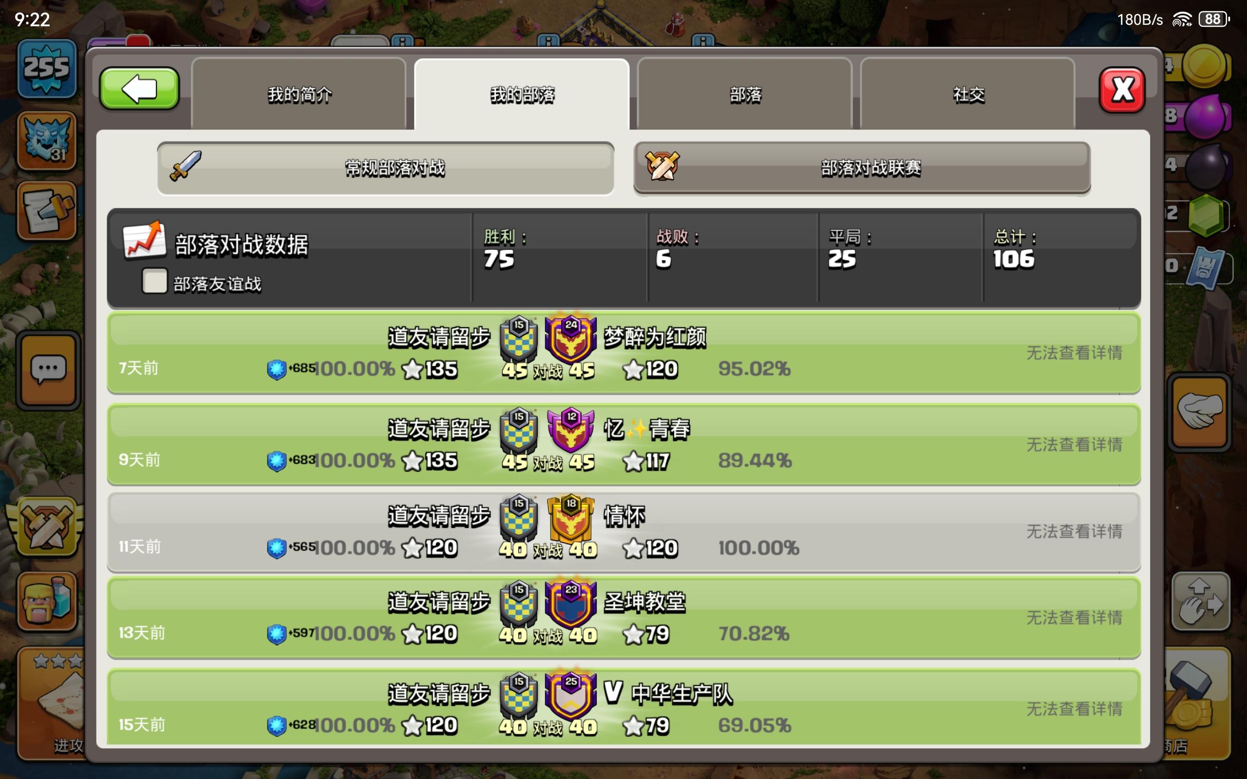 12月联赛加的部落,结束了一直在打部落战,两刀打满,今天早上打了两刀一刀三星一刀两星,都是比我高的位次,然后这会我看就把我踢了,还不让重新加,这是什么意思。我也没有消极比赛也没怎么样,捐兵有也娟,都城也是尽可能打,我就想好好拿个奖励什么的,怎么就踢了呢。我打的时候还特地换了个烧烤和蛋糕,我这算什么。#
