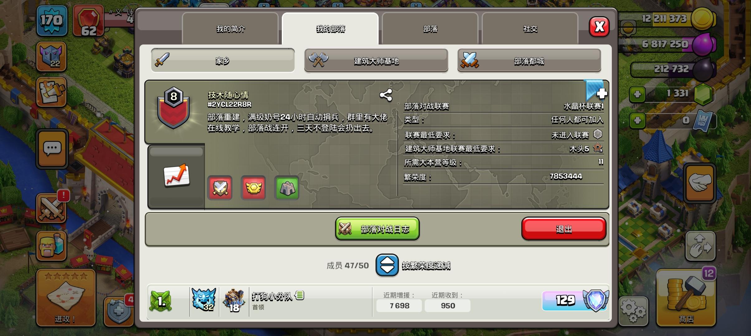 老部落重新出发,招人打联赛、部落战、竞赛和都城突袭都开,来养老也可以,诚招各位大佬来我部落一起玩 #292RR2JUP #部落冲突 #招募
