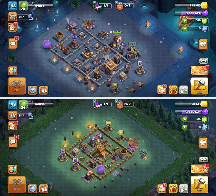夜世界还得是重火力放前面,好刷资源多了,现在就等英雄升级解锁6农了#部落冲突