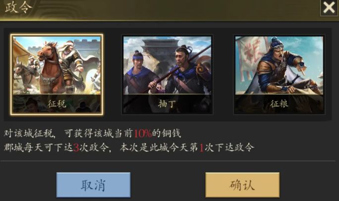 通过跟很多朋友的交流,我发现了一个现象,绝大多数《军令如山:王者之心》的玩家们都特别热衷于攻打郡级别以上的城市。即便强行攻打郡城会面临海量守军的顽强抵抗,自己这边也将蒙受十分巨大的战斗损失,然而人人都乐此不疲,容易攻取的小县城则完全瞧不上眼。 根本原因就是无利不起早,因为相比起县城,攻克郡城以后获得的最大特权,就是可以在本郡的辖区范围内,对任何县城和据点发布政令。征税、抽丁和征粮,三个套餐怎么也跑
