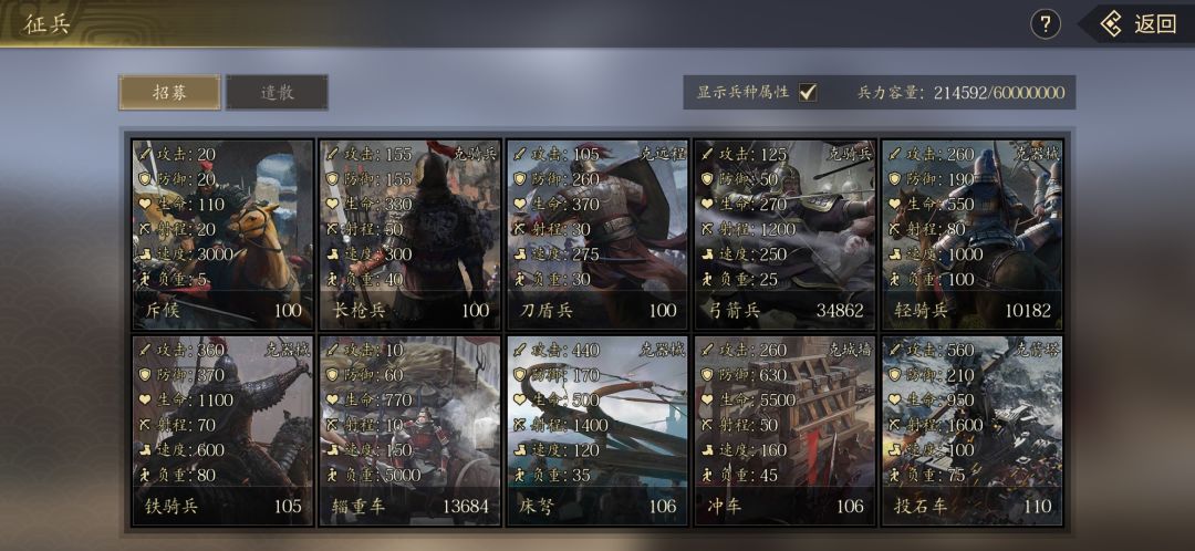 为什么本期taptap版《军令如山:王者之心》的介绍篇,我要着重讲提升投石车的战斗力技巧?开篇就给大家献上这张图,想必就一目了然了。 由上图可以肉眼形象感知到,投石车这个兵种在当前版本的《军令如山:王者之心》手游里是绝对王者的存在。二梯队,由射程次于投石车的床弩和弓箭手组成;三梯队,是速度和血量方面占优的重甲骑兵、冲车和轻骑兵;四梯队即底层,包含机动力或者战斗力最弱的斥候、枪兵、刀兵以及辎重车。 投
