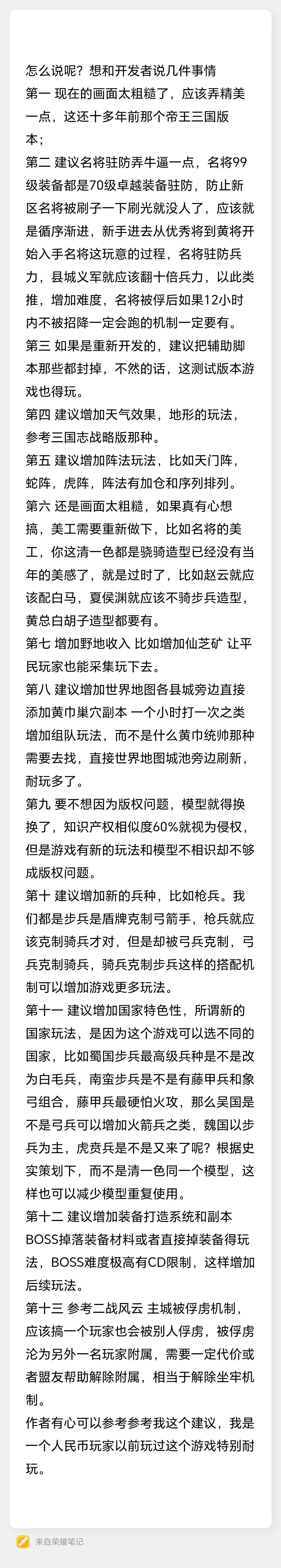 可以模仿帝王三国这种真正的抓将机制会更耐玩一点,地图太大了,又弄的不像三国志战略版,所以有四不像的机制,才会导致玩家这么少。并没有排兵布阵的感觉,也没有抓将的感觉。