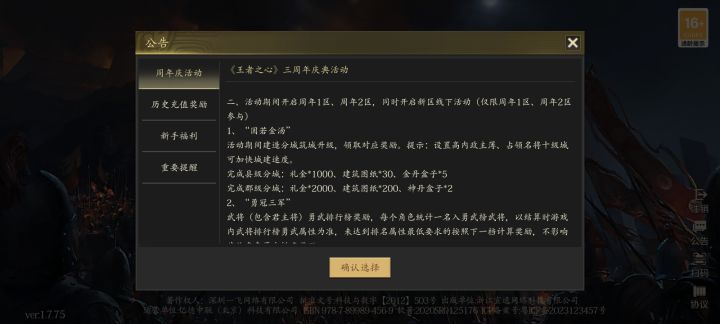 随着周年服的开启周年服的活动也是非常的丰富 除了充值的返利之外 平民玩家也可以通过升级将领提高武勇或者升级城池来完成任务获得奖励首先我们来说说城池升级奖励 除了通过设置高内政主簿讲主城内建筑升级至满级之外还可以通过占领十级城池来达到快速升级的方式来获得奖励 因为占领十级城池之后有几率城内的建筑是不降级的 所以可以将占领的十级城池快速地升至满级来升级分城完成任务领取奖励