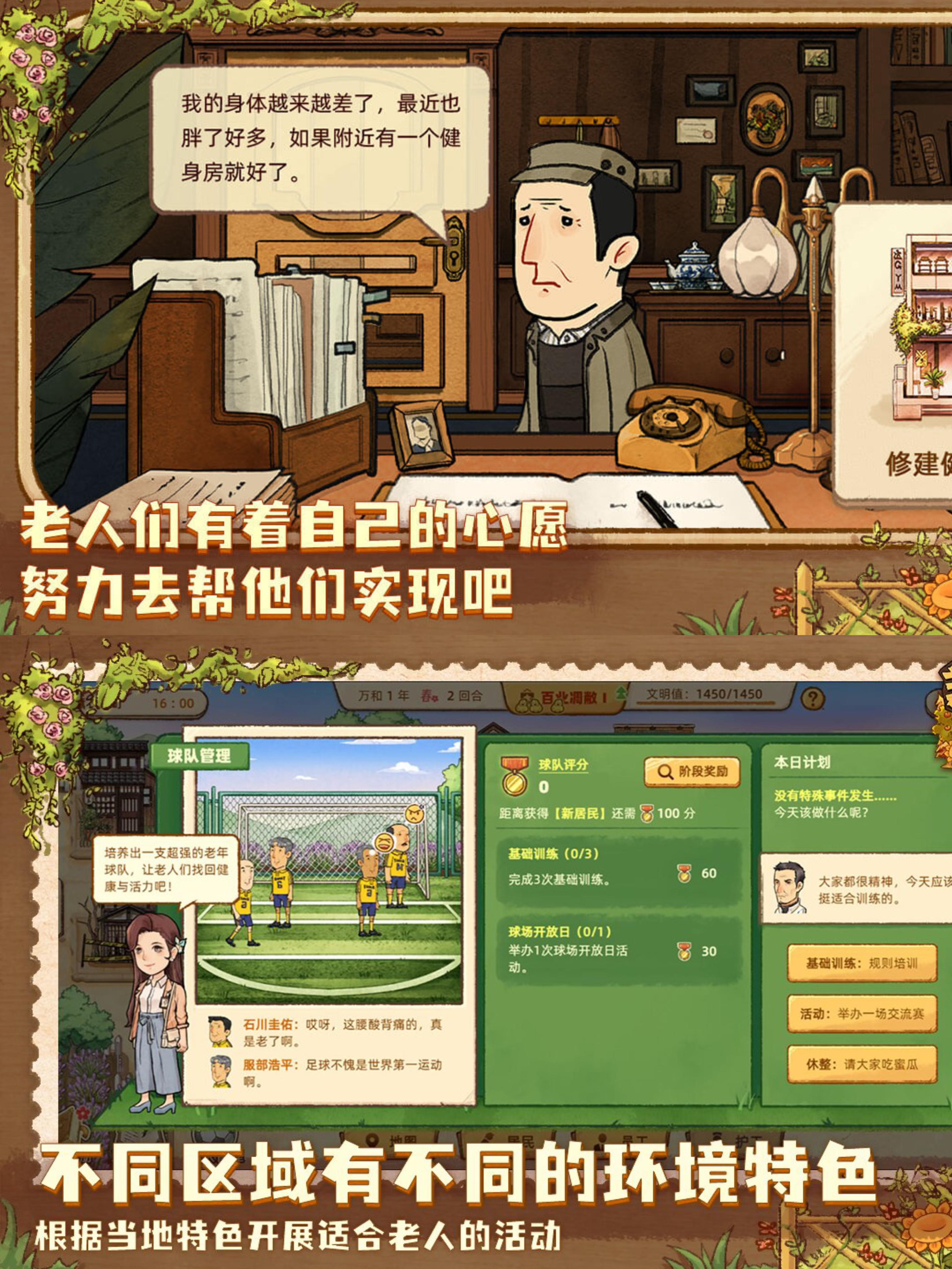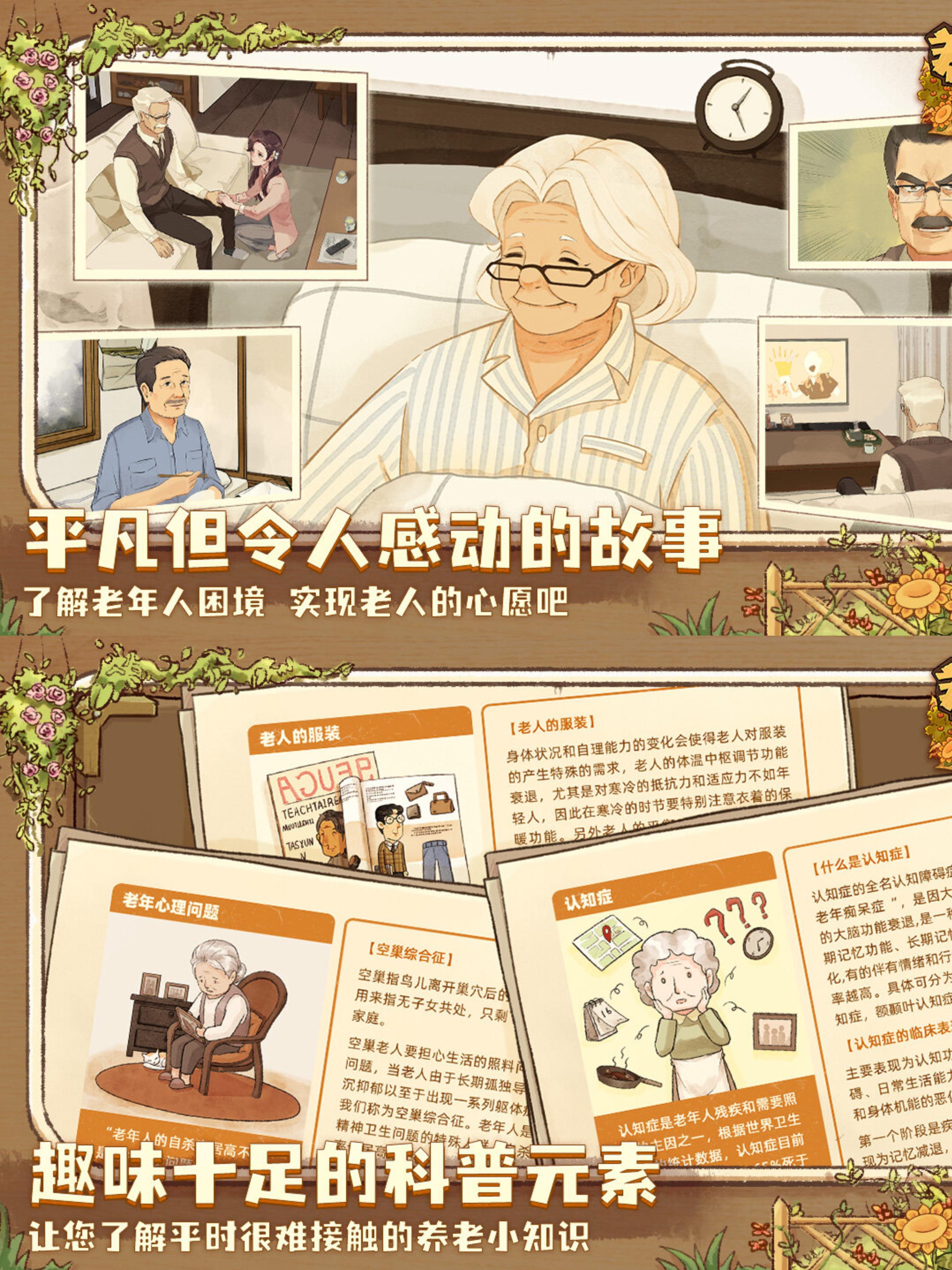 养老小镇 📱/pc 模拟经营/角色扮演/生活模拟/剧情/独立游戏/休闲 🚪我们都无法避免老去的那天 你有想过那时的生活会有哪些变化吗? 有想过老后的自己是什么样的吗? 启动在这款模拟经营游戏中,玩家将扮演一个管理者,来到一个全是老人的小镇,在这里你将接触到形形色色的老人,和爷爷奶奶们建立情感联系,感受他们的日常生活,体味百态人生…… ✔️游戏内容很丰富,七大区域百位居民,每一位爷爷奶奶都有着自己