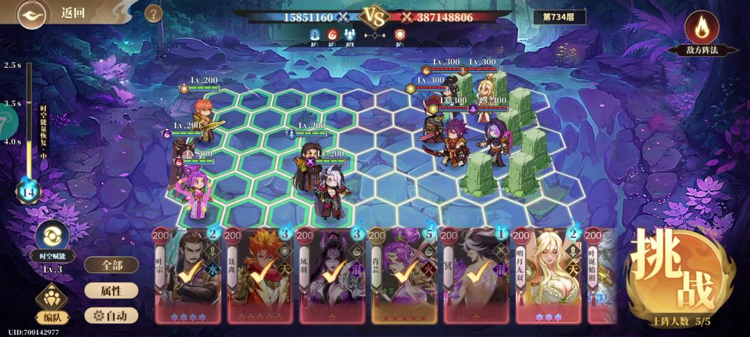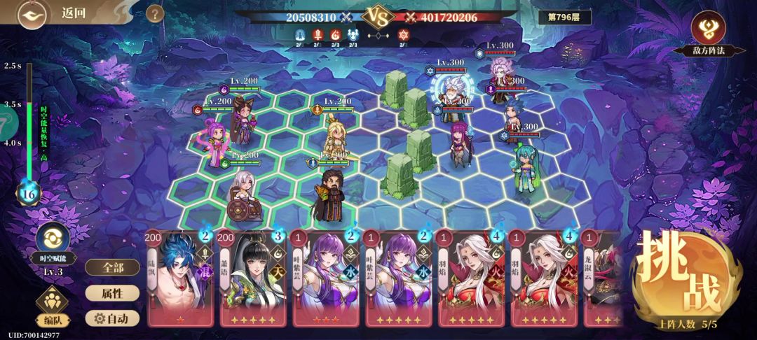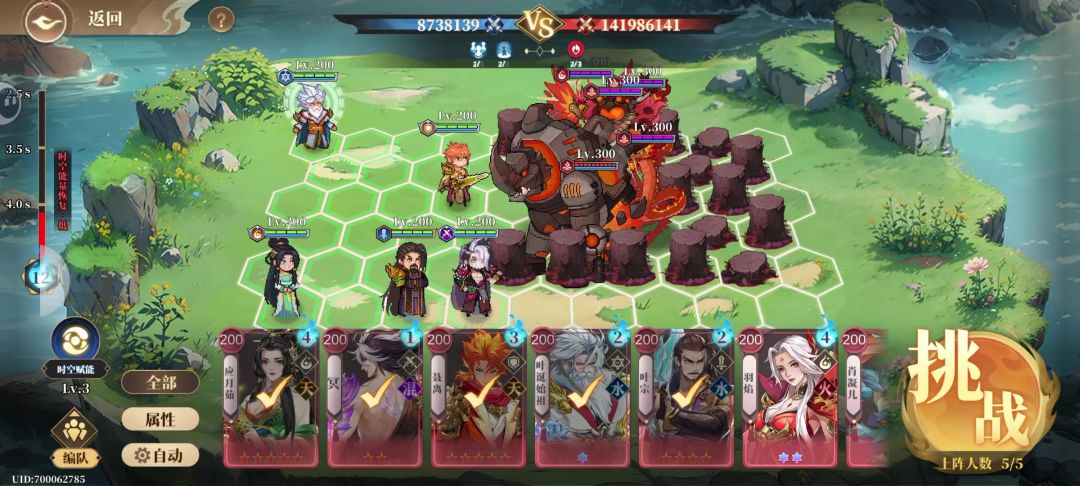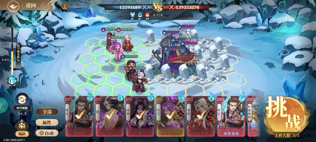 活动boss打法分享,主c:叶宗、龙淑云(明月,宁儿)辅助:顾兰,肖云(应月茹),还有个位置随便。妖灵触发三个冰凛+2和风(天恩)。低配高伤,我这个就三品蓝色(两套)其他都两品