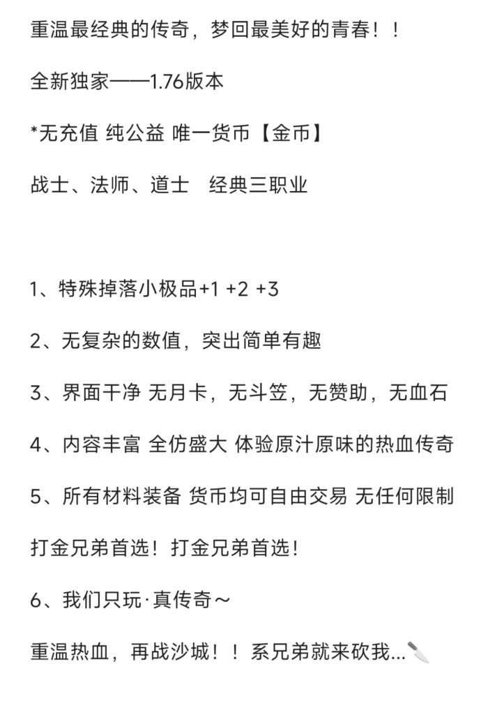无充值,无元宝,金币复古,无VIP,是兄弟就来砍我!!!