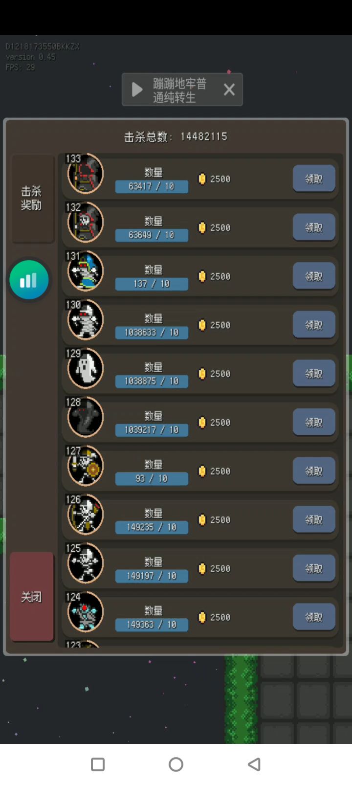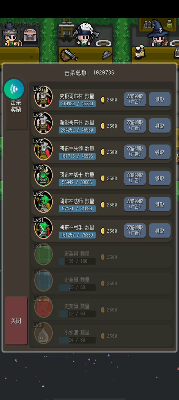 按233击杀零一次2500金币(我免广告5000,算作0.5w)